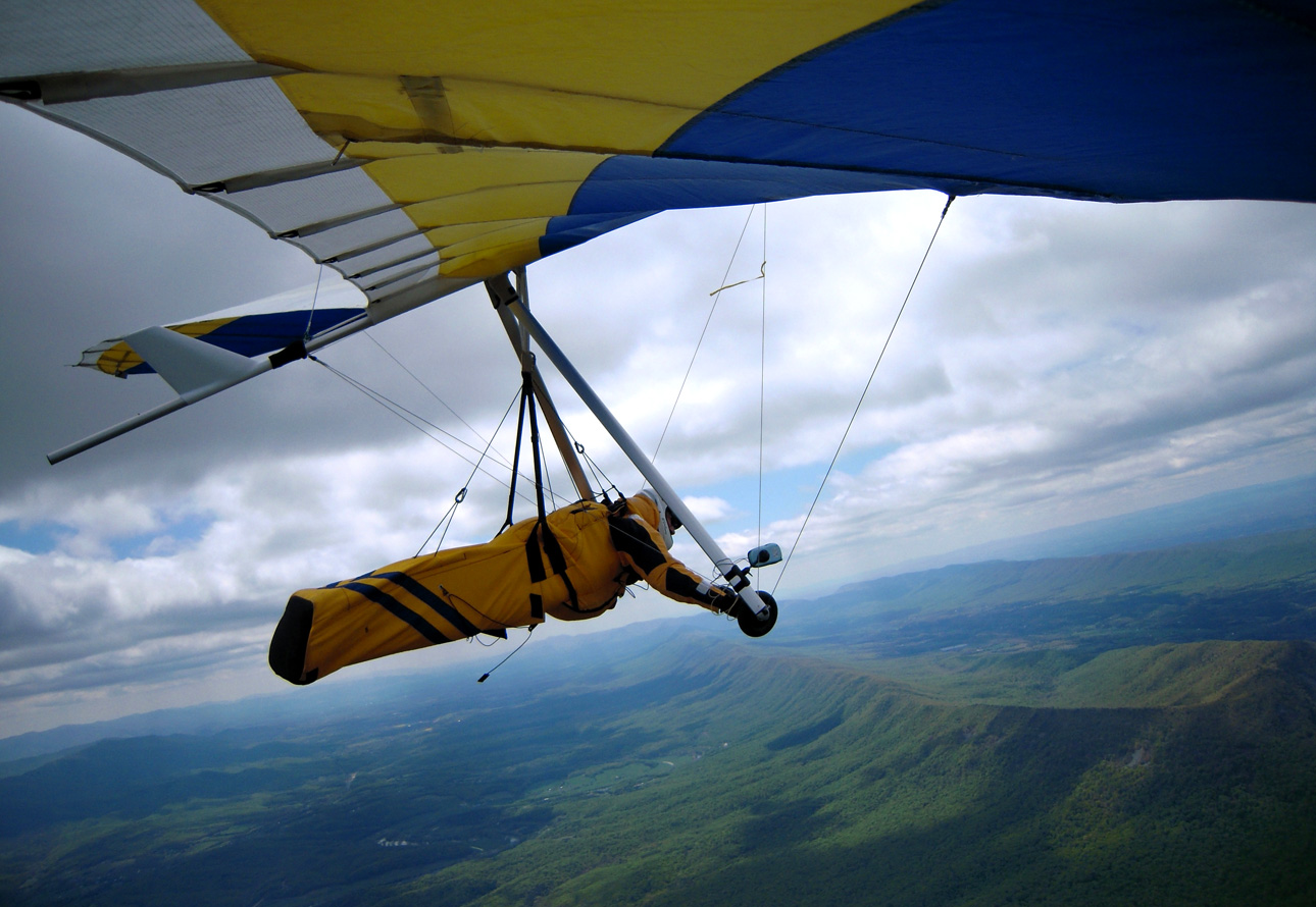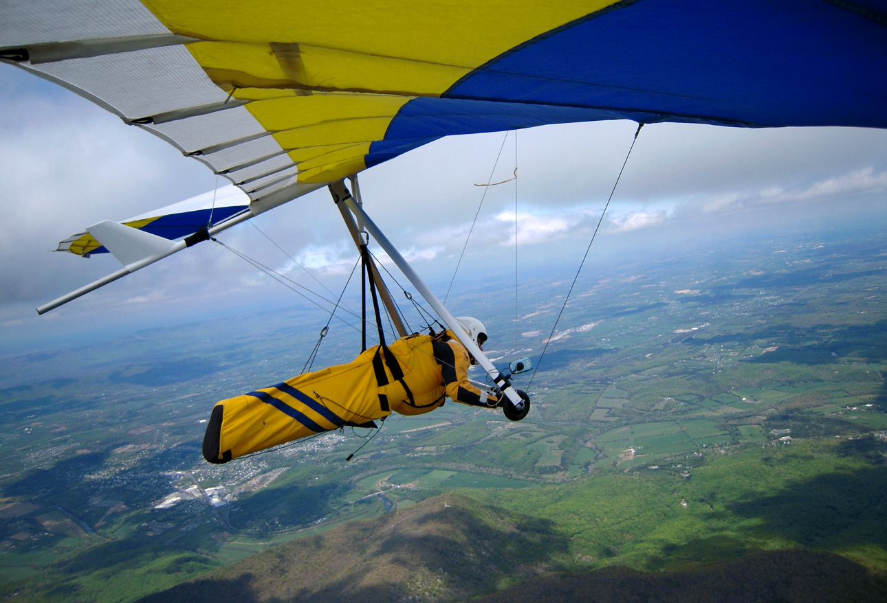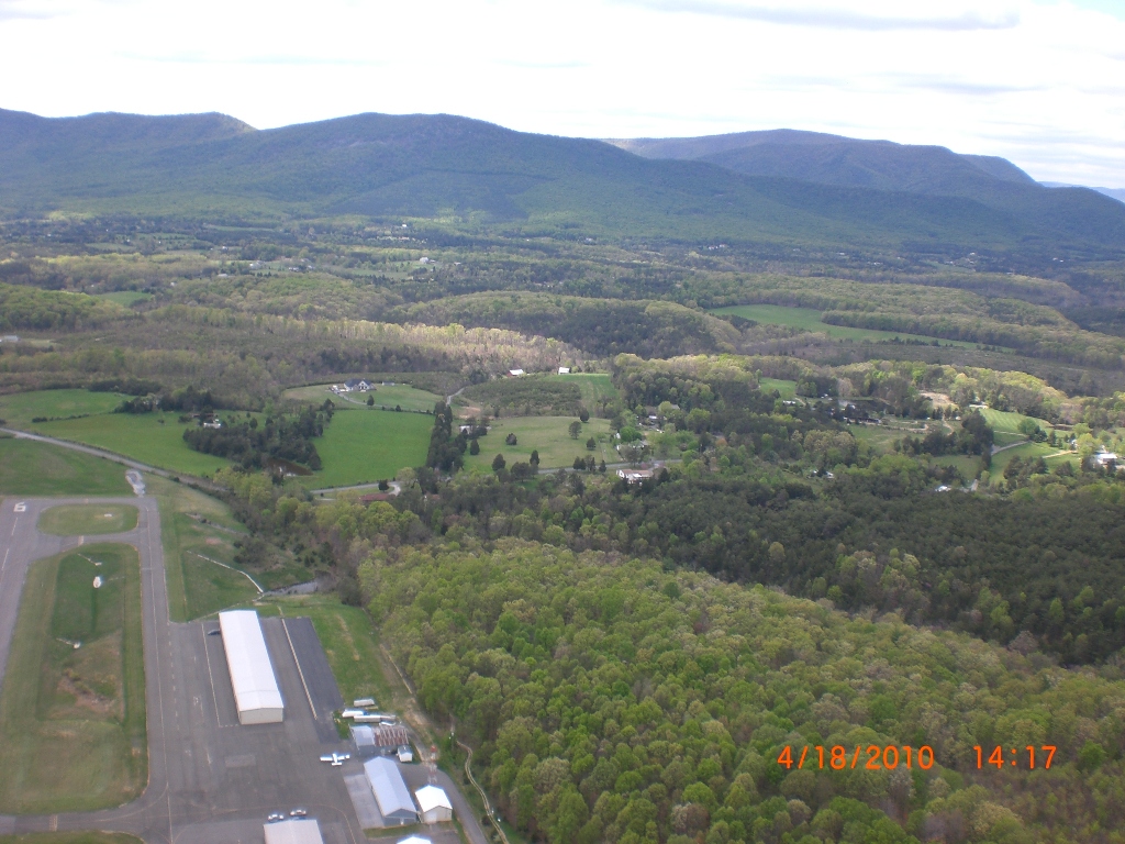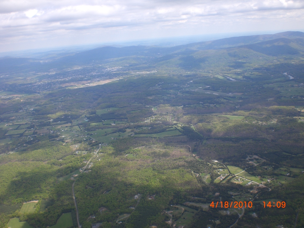 Yes, it was a good day soaring above the mighty Massanutten. Bacil, Dan and I decided that we would fly to the north end of the ridge, hang-out there and wait for our dream OTB thermal(s). After taking off around noon, I realized that the NNW cross was bouncing off the fingers making for choppy-sporadic ridge lift. Below 3,500 msl many of the thermals that I encountered out in front of the ridge, on the way up to the north end, were small and rowdy but once I climbed above 3,500 ft most thermals had multiple cores that allowed me to stay above 4 K for most of the second half of my 2hr 19min flight. Just about all of the significant lift that I was lucky enough to fly into came from thermals that most likely originated from the leeside of ridges that I passed over. I made it to cloud base 2 or 3 times (~5,800 msl), with most of the high climbs occurring east of Signal Knob and while flying toward and along Sky Line Drive. For me, yesterday was special. I got to spend time parked above the old launch (~1/2 mile north of the current launch) trying to remember my last flight from Woodstock back in 85. Going over the back at Signal Knob and flying past Dickey’s ridge yesterday was great too! After passing the Dickey’s ridge LZ, I couldn’t find any thermals strong enough to allow for a safe passage over the mountains so I landed in a pasture next to Hogback Mt. in turbulent conditions. While on final (at tree top level), I flew into some major trash triggered most likely by a thermal that was lifting off my primary LZ. With my vario screaming UP, I managed to maintain enough control to fly to the adjacent “Plan B” field. By the time I was in ground effect, the wind direction had switched nearly 180 degrees. Fortunately, my wheels gave me a smooth bouncing touch down. Wheels may increase your drag in the air, but it's a “Major Drag” if you don’t have them when landing in turbulent conditions. After landing, I radioed Bacil, reaching him just before he landed at Front Royal airport, and 3hrs later we were back at launch. Thanks for the retrieval Bacil! What follows are some photos of the flight, starting with the trip north to Signal Knob and the rest were taken after I left the Massanutten ridge.