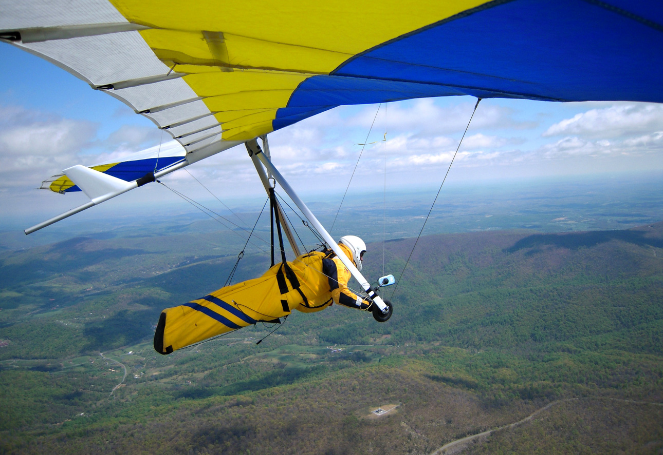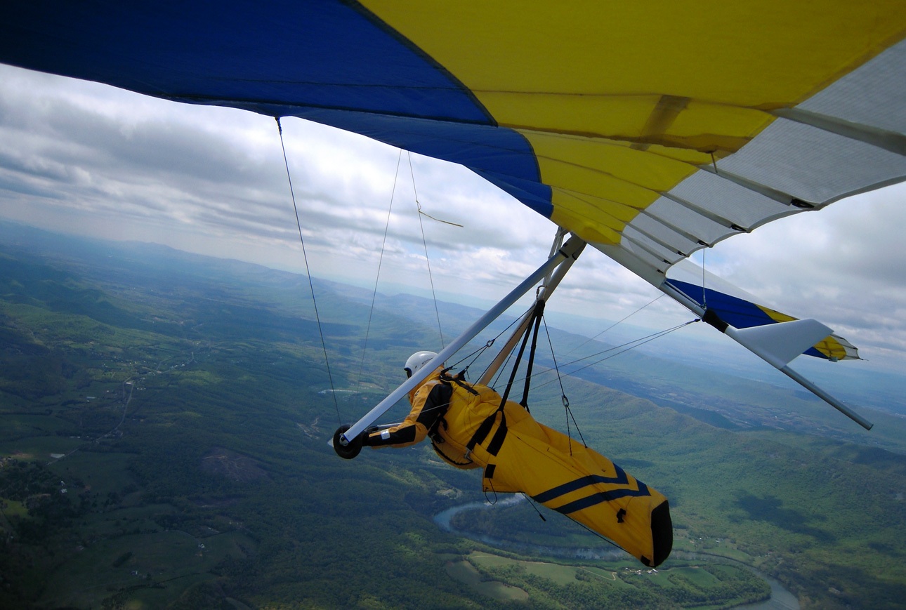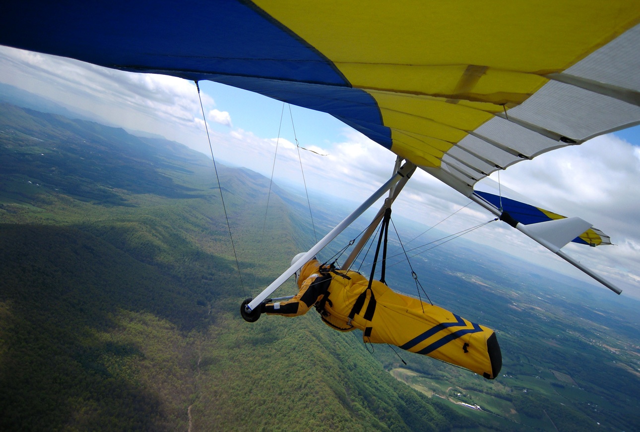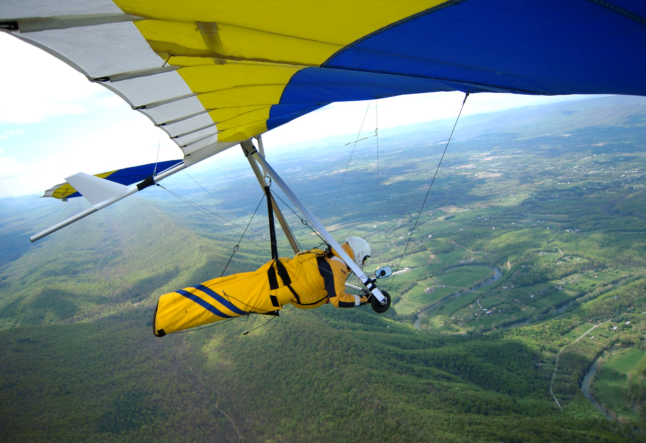 Yes, it was a good day soaring above the mighty Massanutten. Bacil, Dan and I decided that we would fly to the north end of the ridge, hang-out there and wait for our dream OTB thermal(s). After taking off around noon, I realized that the NNW cross was bouncing off the fingers making for choppy-sporadic ridge lift. Below 3,500 msl many of the thermals that I encountered out in front of the ridge, on the way up to the north end, were small and rowdy but once I climbed above 3,500 ft most thermals had multiple cores that allowed me to stay above 4 K for most of the second half of my 2hr 19min flight. Just about all of the significant lift that I was lucky enough to fly into came from thermals that most likely originated from the leeside of ridges that I passed over. I made it to cloud base 2 or 3 times (~5,800 msl), with most of the high climbs occurring east of Signal Knob and while flying toward and along Sky Line Drive. For me, yesterday was special. I got to spend time parked above the old launch (~1/2 mile north of the current launch) trying to remember my last flight from Woodstock back in 85. Going over the back at Signal Knob and flying past Dickey’s ridge yesterday was great too! After passing the Dickey’s ridge LZ, I couldn’t find any thermals strong enough to allow for a safe passage over the mountains so I landed in a pasture next to Hogback Mt. in turbulent conditions. While on final (at tree top level), I flew into some major trash triggered most likely by a thermal that was lifting off my primary LZ. With my vario screaming UP, I managed to maintain enough control to fly to the adjacent “Plan B” field. By the time I was in ground effect, the wind direction had switched nearly 180 degrees. Fortunately, my wheels gave me a smooth bouncing touch down. Wheels may increase your drag in the air, but it's a “Major Drag” if you don’t have them when landing in turbulent conditions. After landing, I radioed Bacil, reaching him just before he landed at Front Royal airport, and 3hrs later we were back at launch. Thanks for the retrieval Bacil! What follows are some photos of the flight, starting with the trip north to Signal Knob and the rest were taken after I left the Massanutten ridge.