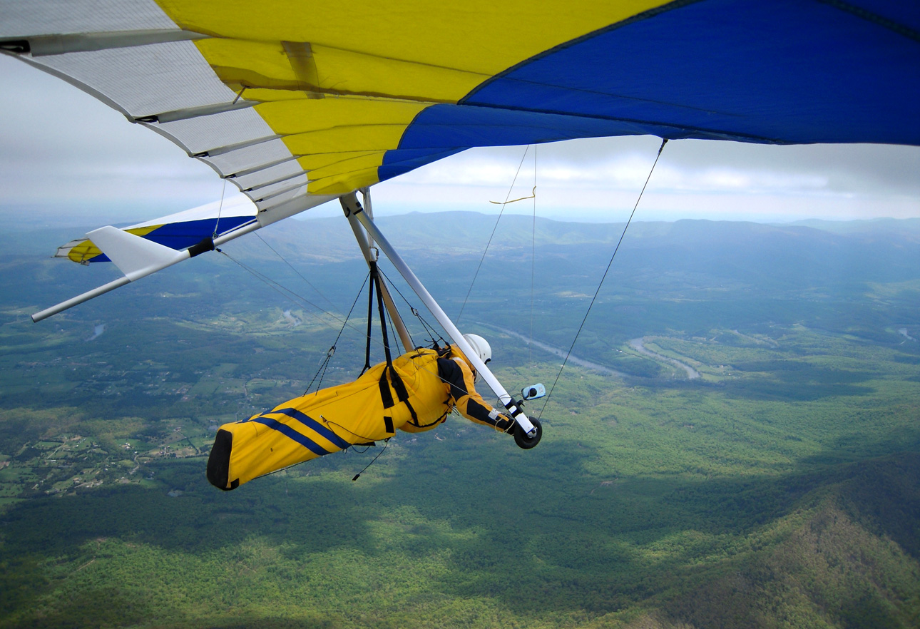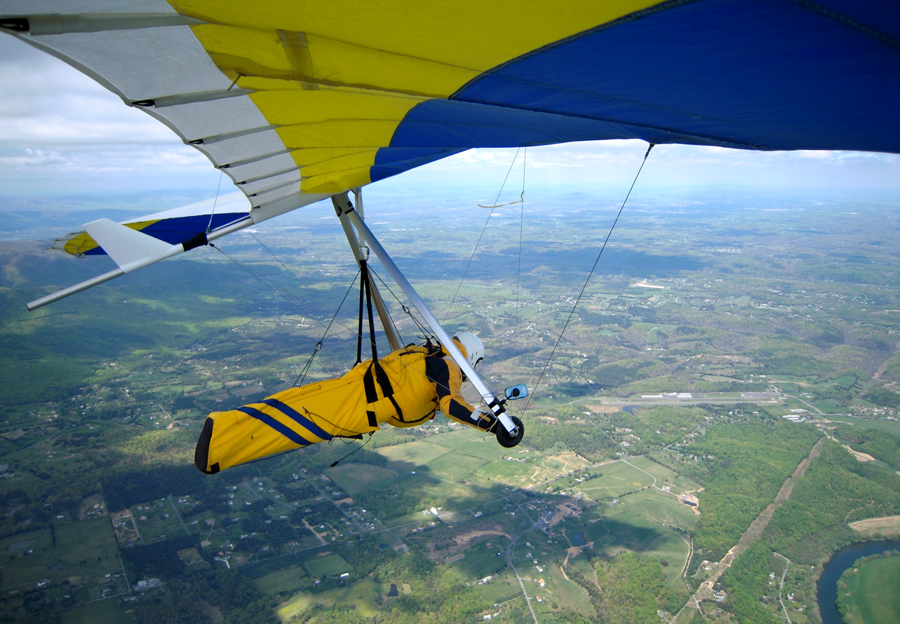 Well, my timing couldn't have been worse. Had I launched 15 minutes earlier or an hour later, I think my day would've been very different. As it was, I got on launch right after Bacil and had to wait awhile for a good cycle. I timed them and took a real nice one and got right up to ridge level. The goal was Front Royal airport so I immediately headed North but before I even got to the first finger I was getting drilled and couldn't even cross it. Down, down, down, fast until I was 4-500' below the ridge working a tiny bubble over a little spine coming off the finger. Way down below me over the river I saw an immature bald eagle circling which was cool. Before I knew it he was in my thermal climbing right through me. He dive-bombed me at one point but didn't ever get very close. That thermal got me up 700' over the ridge and I continued North over the first finger. I hit one more light thermal in the 1st bowl that went to 700' over again but that was it. There was a tiny bit of ridge lift and by the time I got to about the 5th finger, I had not run into a single thermal. So back down at ridge level and discouraged I decided to turn back and try to make it back to the main LZ. Fortunately the Northerly tail wind helped me make it as I porpoised over each finger on the return, never more than 100' over the ridge. In fact I wasn't going to make it over the last finger and then found the best thermal of my flight right in the corner which took me up to 1000' over before dissipating. At that point, I turned back North to give it another try. But as soon as I turned North I got drilled again (like never before) and quickly gave up on that idea. Within a very few seconds, I was back down below the ridge. I have never dropped out of the sky like yesterday. Unreal sink. I leveled off about a hundred below the ridge and cruised towards launch hoping for anything. Before I even got there, I got slammed again and had to dive out of the hole straight out from the mountain. I didn't recover from that scraping and I went out to land. Landing was uneventful in the calm primary.