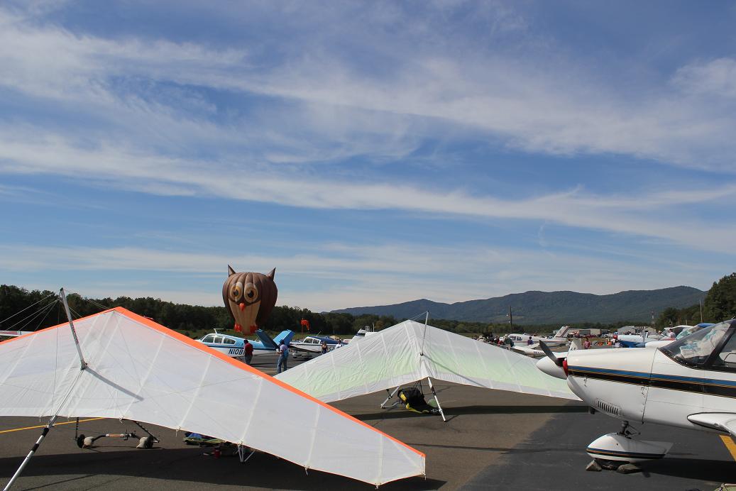 It was a beautiful day yesterday at the airshow. Sunshine, a light breeze, temps in the low 80's. The Flying Circus was there which was quite entertaining. There was also an aerobatics show which was pretty sweet. Bacil and I handed out flyers and while I doubt we got any new students, we probably sold a few tandems for Highland. lol. But it was a fun day anyway, right up until a dust devil came out of nowhere and turtled my glider. And since we were on the tarmac, there was no dust and no warning. I was actually sitting on my bastube when it came and started to lift the keel off the ground. I felt the forces building so I jumped up and grabbed the nose wires hoping to fly it like a kite while the freak gust passed. But it was swirling and the left wing got lifted off the ground really fast. I tried to hold on to the wires but when I started to get lifted off the ground, I let go. It flipped over and started to get dragged back towards the airplanes behind us. Meanwhile Bacil's glider started getting rotated but luckily he had someone standing there to grab one wing while he had the other. They danced around with it a full 180 degrees before they got it back under control. As soon as my feet hit the ground after being lifted, I wrapped my arm around the right flying wire because I really didn't want it to slam into one the planes. That would've been expensive! I managed to hold it from getting dragged any further but I have a nice little wire burn on my arm for my efforts. The devil was gone as soon as it came, this all happened in just a couple seconds. And of course, it was all on the asphalt so I also got a scuffed leading edge and a hole in my nose cone from being dragged. :evil: But I think that is all of the damage, it could have been worse. Needless to say, we packed it up after that. So, all in all a fun day, albeit a bit of an expensive one.