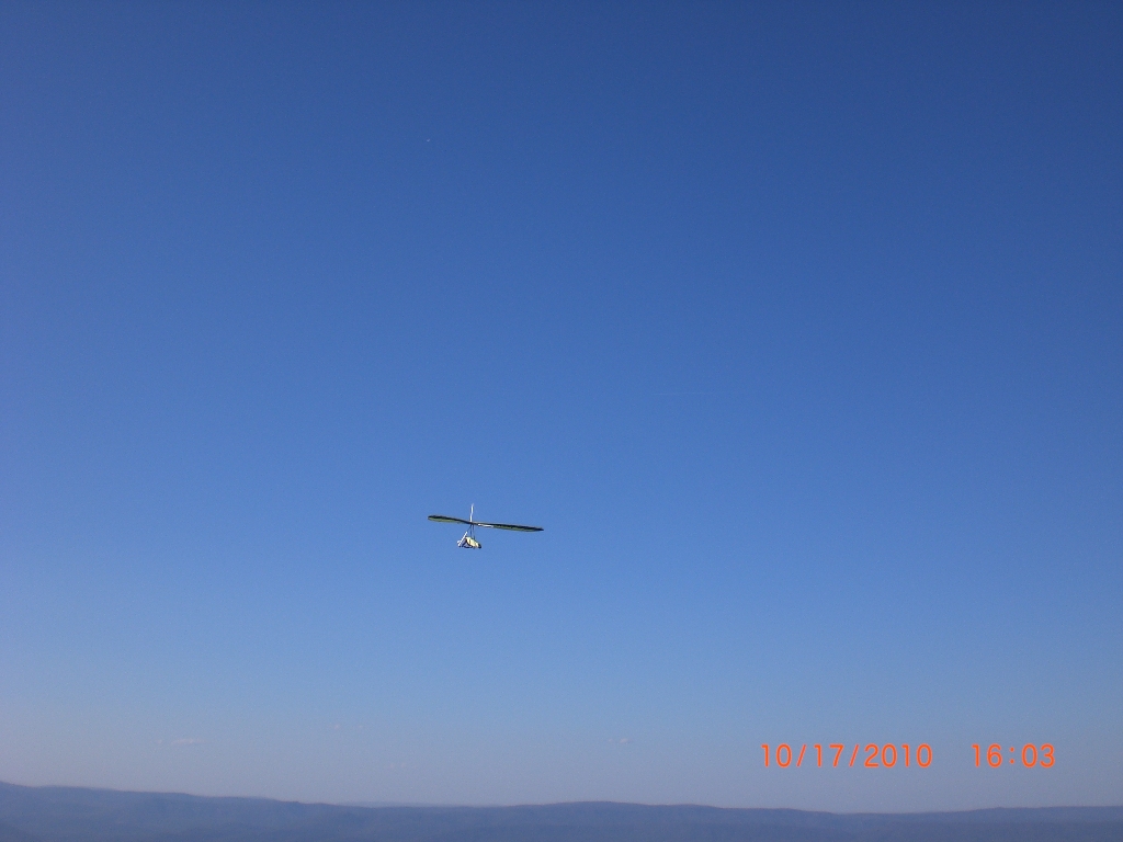 Got to Woodstock at 1P with clear skies and light conditions. Within the next half hour Matthew, Karen, Ashley, and Carlos showed up. Around 2P it started ramping up (the frontal passage) but the cycles were way cross from the west. Launched at 2:30P into straight in light air in the slot and got clear of the slot quickly. Got hit by a wall of air from the left and cranked a 70 degree left turn into the river of air flowing down the ridge at 25 knots. Stair-stepped my way up above the ridge in the worst rotor chop I've experienced. At times I was going backwards, albeit very slowly. After gaining up to a few hundred over the ridge it smoothed out some (still choppy) so the white knuckle grip on the basetube could be relaxed. Inched my way down to Waonaze Peak and the west facing ridge below it. Spent a good 1:15 down there sniffing for lift over the rockpiles. Maintained mostly between 3300' and 3600' MSL, with a 25 knot headwind out of the west. Found one thermal that got me to 4400' MSL. Could have tried jumping the gap, but the west cross today was stronger than yesterday's. Ashley joined me down at the gap for a good while and found good lift behind Waonaze Peak. After two hours in the air I had had enough, so I staged way out in front of the ridge and let the west cross push me quickly towards the main LZ. Another turbulent approach and nice landing at 5P. Matthew, Carlos, and Randy also flew. Matthew landed after I did and commented on how trashy it was on approach. Ashley, Carlos, and Randy put down in succession after Matthew. Karen broke down on top. Bacil