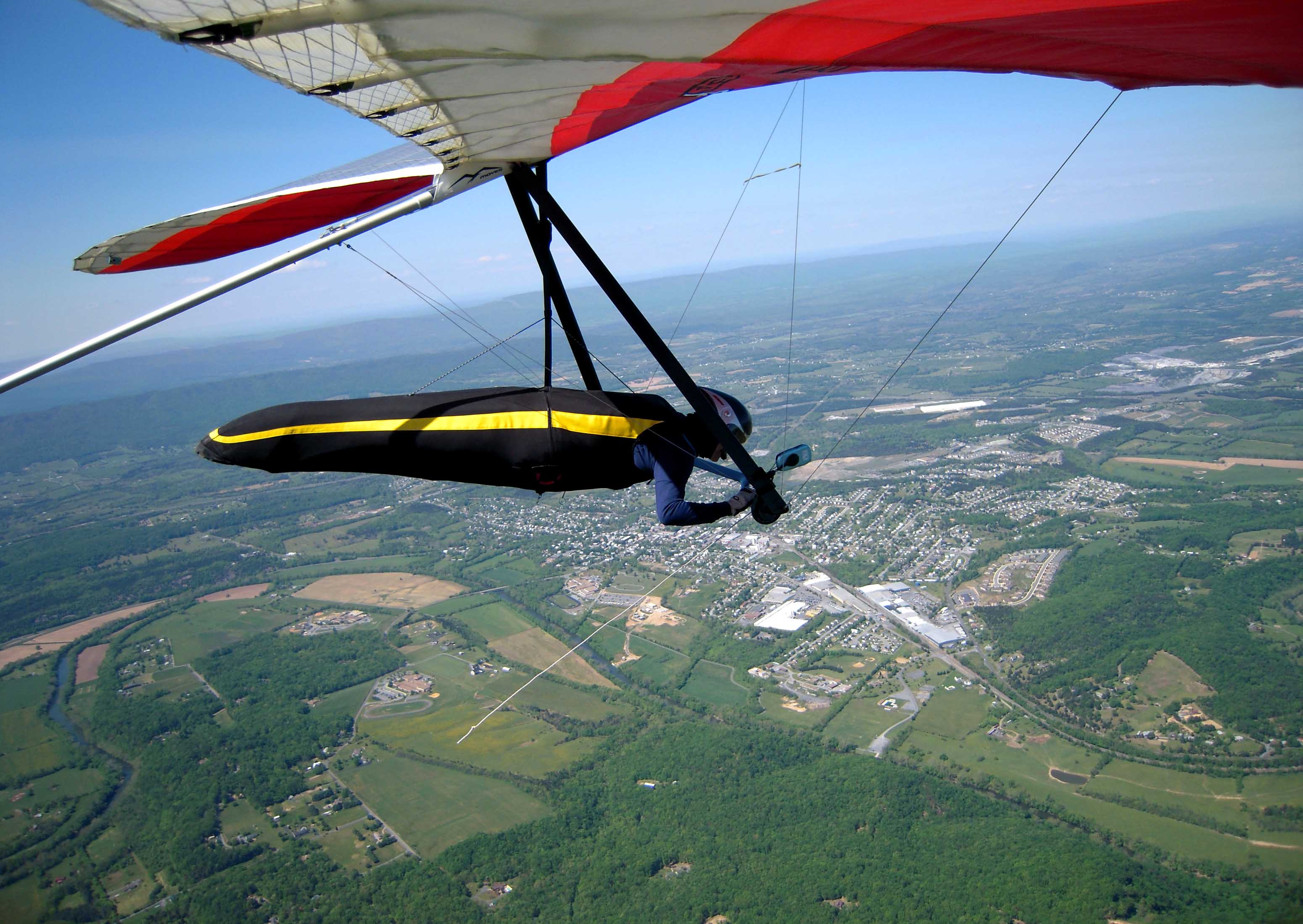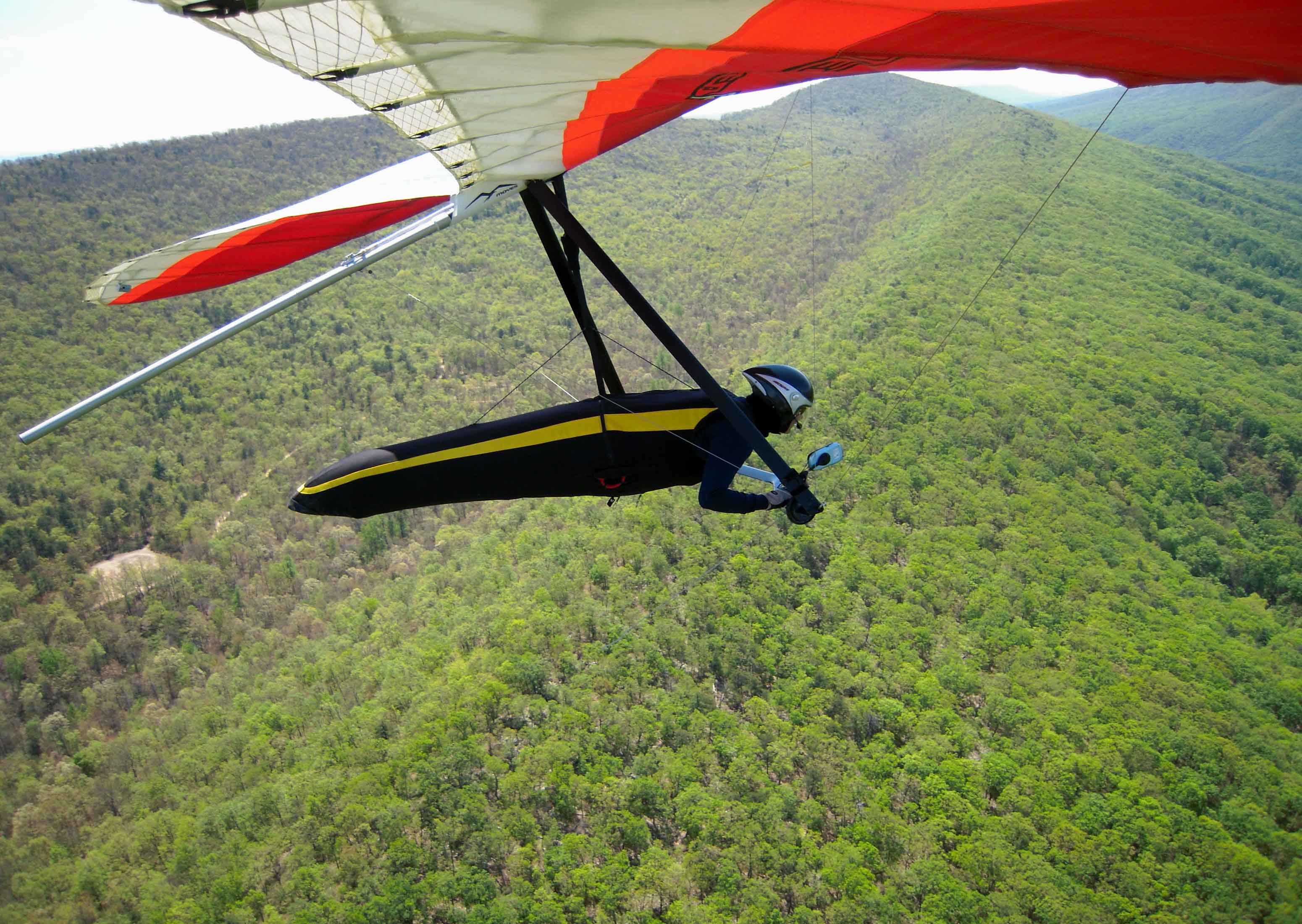 The forecast was for fairly strong winds, straight in, at launch and the drive out made it seem like that was certainly going to be the case. Earlier on in the morning the sky was almost overcast but every hour that went by the sky dried up more and more until it was mostly blue sky by afternoon. At launch there were strong thermic cycles rolling through often enough, but no freight trains and plenty of very launchable cycles, and there was a definite west component to the wind. I launched just before 2pm into a thermal that elevatored me right out of the slot. Matt launched not long after and we headed north up the ridge. Found lots of strong thermal activity along the ridge to the north......encountered some really strong lift and had a super cool encounter with an immature bald eagle. He showed me his talons and then disappeared right behind me...I swear for a second I thought he was going to tap on my king post or something but then he returned to my wing tip and and just hung out for a bit. Was considering heading over the back to the Front Royal Airport once I got down to the reservoir but never seemed to get comfortable enough with the idea as I was having trouble staying above 4200msl at the time. I was hoping for that nice big thermal to come and drift over with it but I just couldn't make it happen. Probably could have made it over without issue at my altitude anyway, next time. After playing around down on the north end I thought it would be cool to try and land in this large field on Rt 11 (the really big one where the river comes close to Rt 11 at the entrance to Strasburg) that I had fallen short of last time and landed off of Funk Rd instead. I headed off the ridge at about 4000'msl and immediately started losing altitude as I did last time.....I thought here we go again. I briefly considered tucking tail and heading back to the ridge but thought.....what the heck, its been a great flight already and if I land out short of the goal, then at least i don't have to battle the west cross on the way back. About half way out into the valley I found some lift that put my target back in reach and not long after I found the best thermal of the day for me that got me up to 5000'msl. Things had definitely turned on even more by this time which was right around 3pm and the thermals seemed to be much larger in size and more organized throughout. I definitely had the target field made now