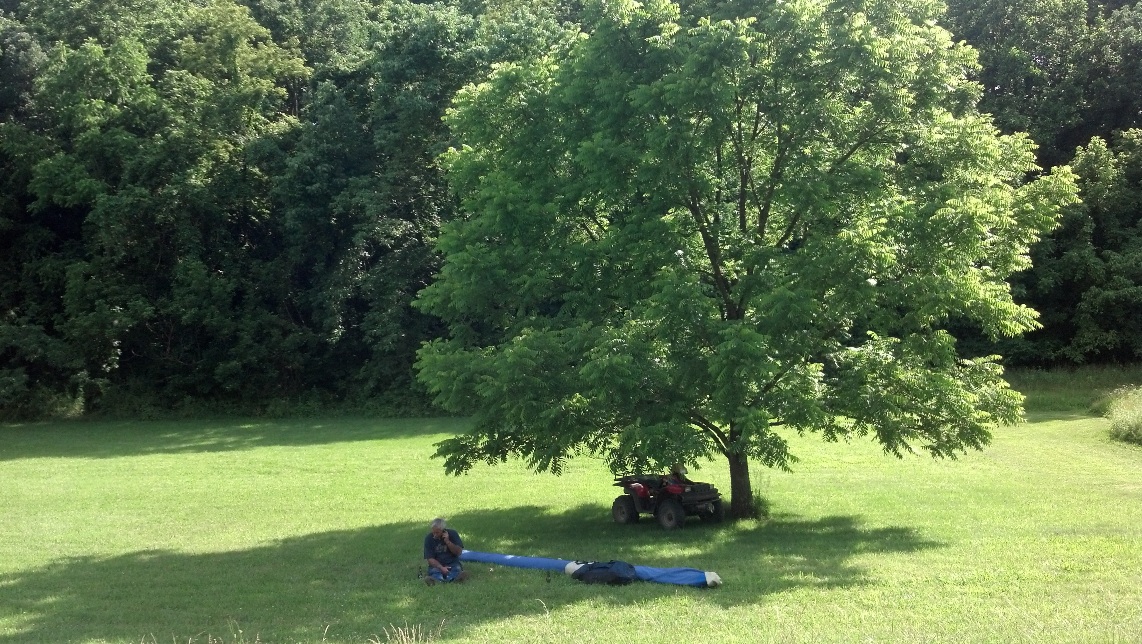 Met the landowner (Ray) after carrying my glider to a nice little shade tree. And... Can it get any better? He zipped on over to the house on his ATV and came back with some ice-cold brews! Can't think of a time that a beer tasted better.