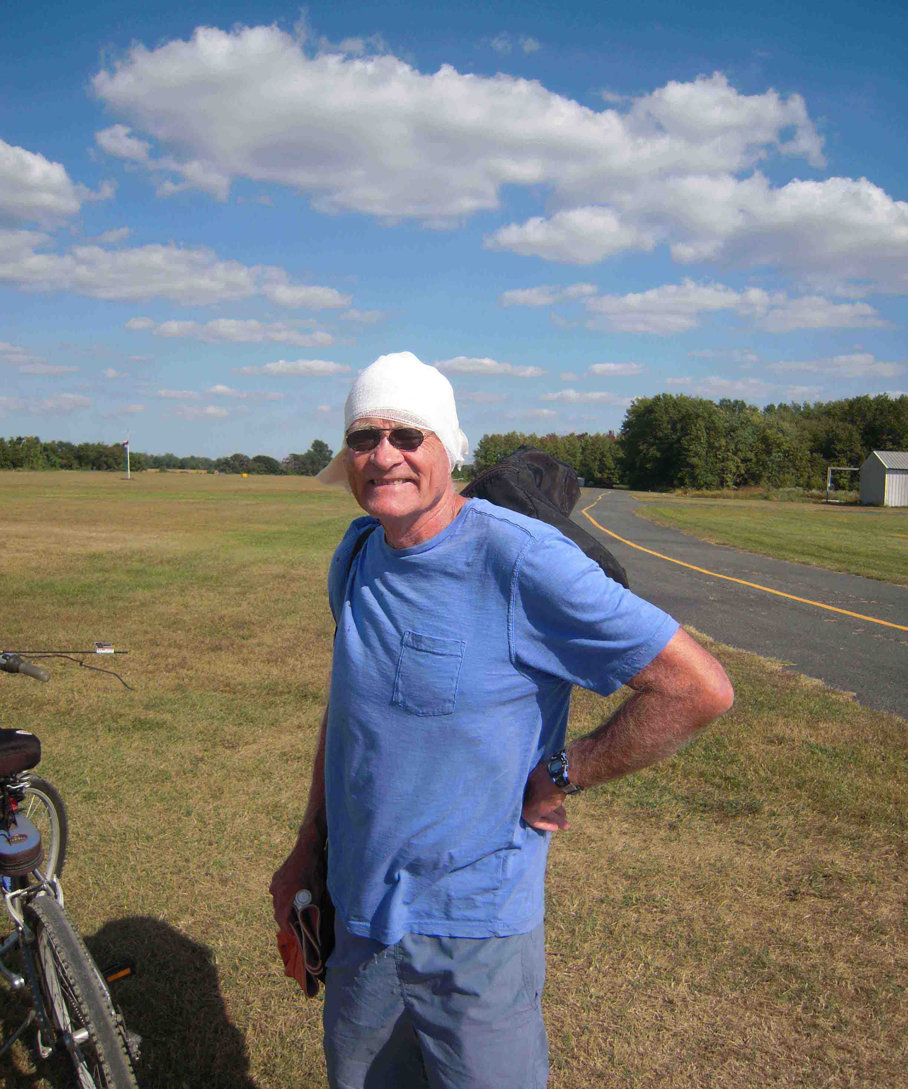 Steve, when Ward told me you were run over by a plane it was hard to imagine. Glad you are OK. How in the hell could a plane get that far off of the runway and destroy your glider and almost you. I guess you didn't get to fly that day (ha, ha). Just think, the chance of you ever getting run over by another plane is pretty slim now.