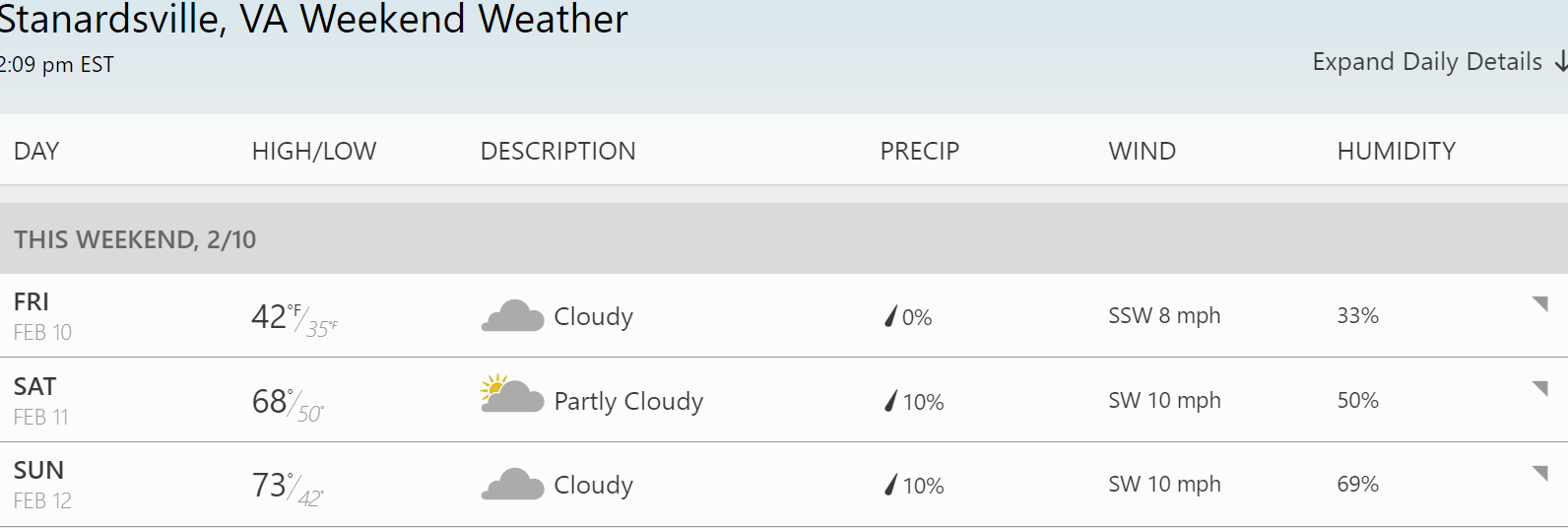 Sat/Sun (2/11-12/2017) @ Daniels?