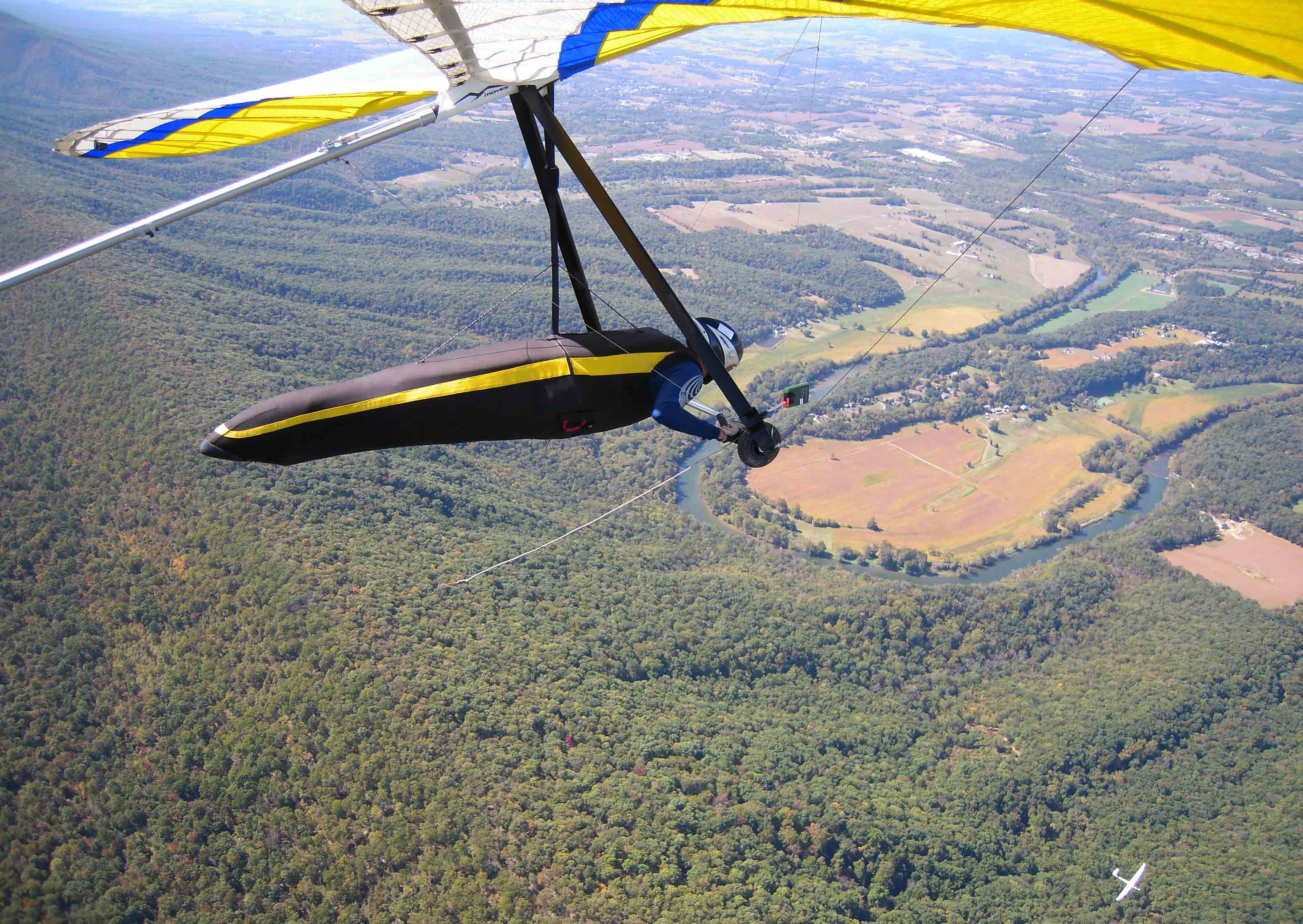 Good day, everyone soared with the help of Lucas (Walt’s son) who came to help us fly -> Thanks! Surface winds were NNW or N during the late morning (real time data from valley stations) and that was in-line with the modest ridge lift that I experienced up and down the north section of the Massanutten. However, the thermals were large with multiple cores that toped out between 5 to 6K msl. My “plan A” fantasy was the same as most Massanutten adventures but the north cross and the crops in potential LZs surrounding the Edinburg Gap cut deep into that. Here are chronologically ordered images of the flight, plus a link to my flight track.