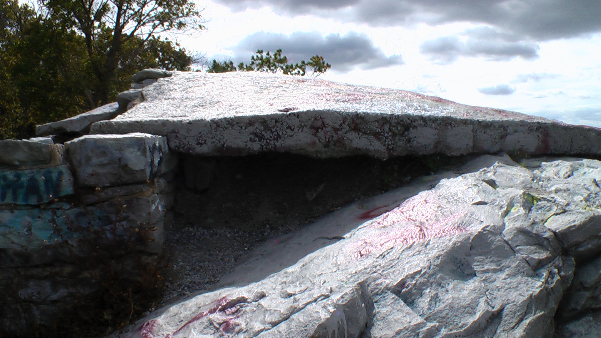 I got a call back from Jim Sterling of Washington County parks, recreation and facilities. He shares our concern about the rapidly deteriorating structure. He may put barriers or at least police tape up to try and keep people off. He will try to get an engineer up there to look at it (but I don't seriously expect any more detailed answer before Thursday). He confirmed that the "pillars" are historical, so any proposal to bust everything down is a non-starter. HOWEVER, he is interested in considering some options for a repair/replacement structure, to include a "wooden" ramp. I reminded Jim that the current rock/concrete structure was built as it was because the previous one had been burnt down in an act of vandalism. But he countered with the idea of some less flammable man-made material such as deck boards made out of recycled plastic (slippery?). I invited him to look at the Pulpit elevated ramps for examples of structures with metal trusses underneath and decking on top. He is even interested in seeing photos of radial ramps such as at Henson's Gap in Tennessee and, now, Ellensville NY. (Could use some tech support in downloading and transmitting such pictures (to my e-mail: mcelrah@gmail.com and I will retransmit to Mr. Sterling).) I also told him the story about the rebar, so he may be willing to consider a more durable rock/concrete solution this time. I asked about what support the county could provide. Any machinery would have to be operated by county employees (e.g. a front-loader to get materials close to the structure) and that means normal working hours - so we volunteers would have to be willing to take a day off to do construction work.