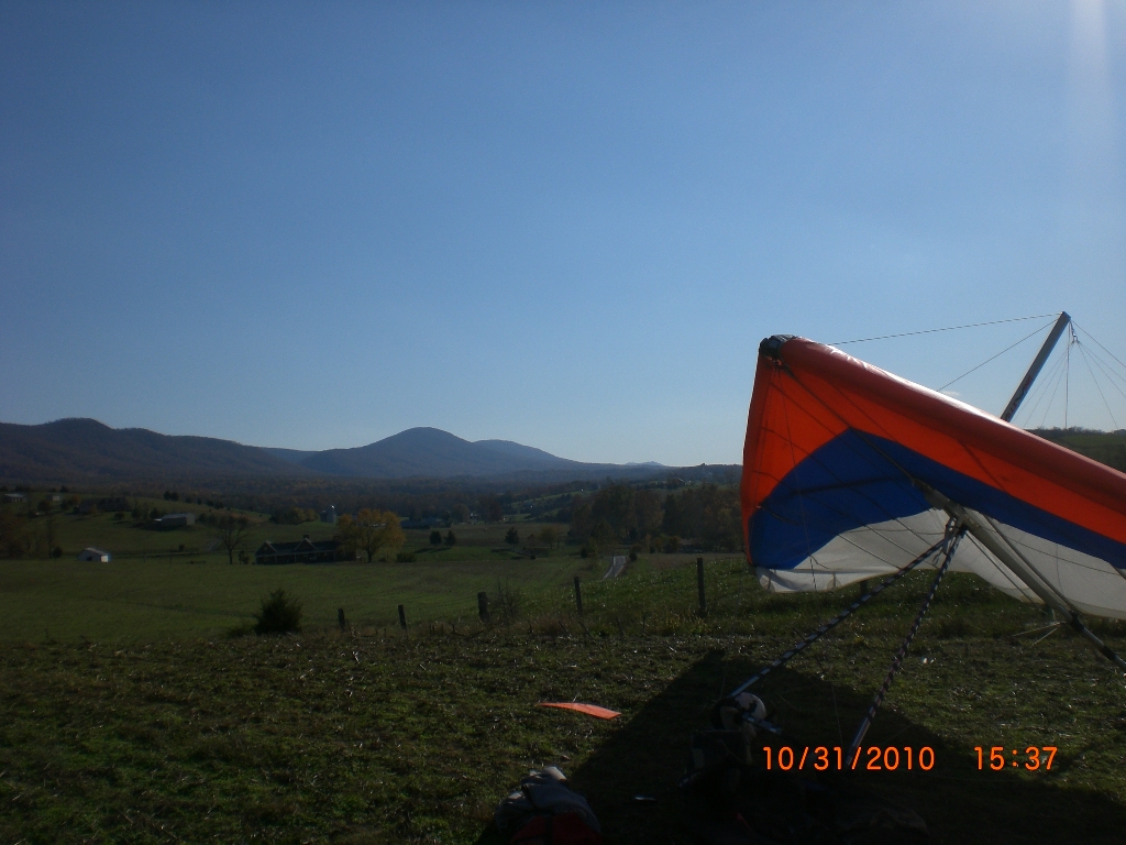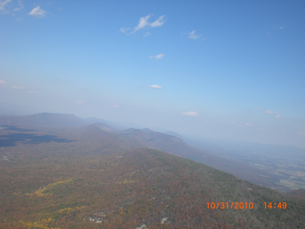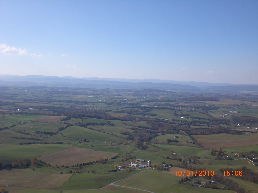 Short Mountain: Here are some views of the Edinburg gap and Short Mt to add to Bacil’s photos and Dan’s video showing potential LZs at each end of the ~ 7.5 mile long ridge. I’ve also included photos highlighting just how ridiculously far-out the tree line extends in front of this ridge and the Kerns Mountain ridge south of Short. Dan’s video also does a good job of showing this rather annoying fact. You can get this info from Google Earth but seeing it from a hang glider’s point of view certainly tests one’s commitment to fly south along the Massanutten. Dan was my XC guide for this flight. I followed Dan across the Edinburg gap and down to the south end of the Short Mt, flying close to him when he was climbing and avoiding or running from him when he was getting drilled (definitely a spineless, fair-weather friend behavior - but hey, it worked for both of us, although at different altitudes). Just about all of the lift that we encountered was thermal related as the prevailing winds beyond the gap were from the north with little, if any, westerly component. By the time we reached Knob Rock, it was reasonably clear that there maybe no ridge lift along Kerns so Dan headed back and I tried my luck heading south out in the valley. The photos start with our journey across the Edinburg gap and end with my landing north of New Market.