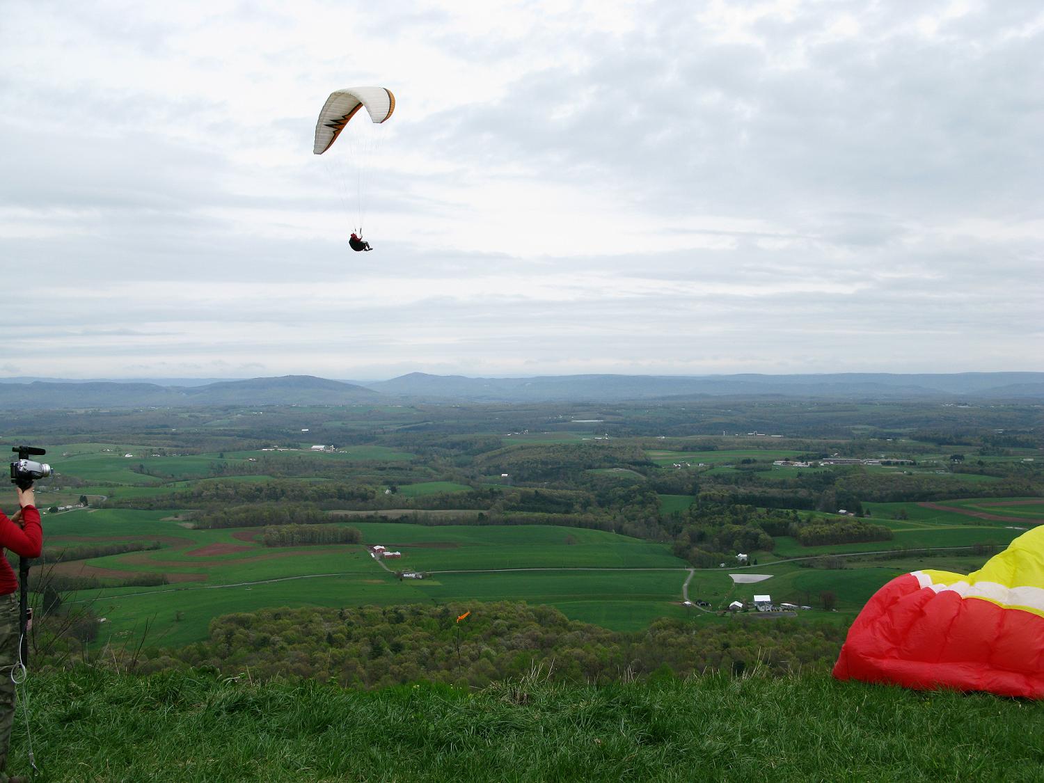 Mixed bag of sleds, extendos and thermal flights early--- then it turned on BIG TIME a little after 5pm. Got up to 1000 over, flew down to the turnpike and back in my bag and top landed after 1:10 so I could Observe Kathy C. and New Dan in HGs. Both had good launches and Kathy got in a few passes along the ridge. Other HGs included Carlos, Pete L., Larry Huffman, Pat Brooks, Gardinator, Shawn Ray, David C. and a H2 from Hyner.