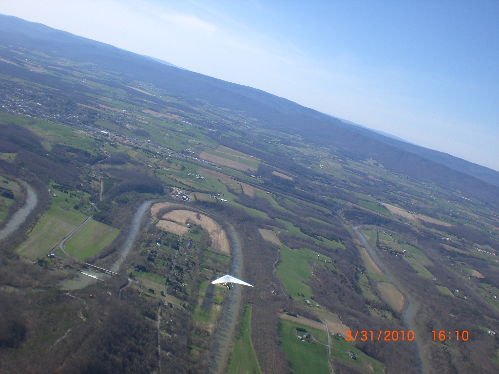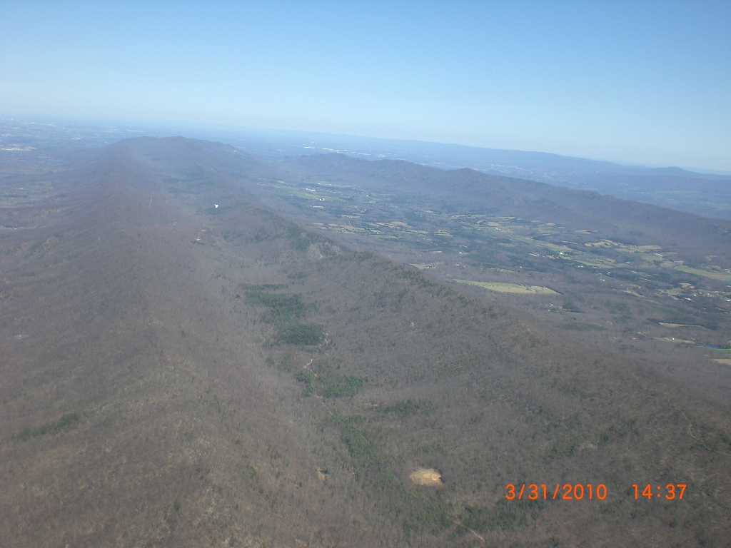 Very nice day at Woodstock today. Got there at 12:20P to moderately strong cycles in the slot to it backing off nicely to 4 to 8 MPH right up the slot. Gary Smith and Krzysztof both got there at 1P, and helped me launch around 1:30P into a smooth cycle. Turned left and got up easily in a west cross on the ridge. Headed down to the Gap, thermalling up to 3700' MSL a couple of times. Saw Gary high above launch. I made it down to the rockpiles but not much was happening, so I headed back towards launch. Got in a ratty one halfway back to launch and got to 5400' MSL. Visibility was great. Headed back to launch and saw Krzysztof take off with Dan's help. Decided to run north to Signal Knob. Ran into a north cross just above Southfork, and dolphin flew up to the radio tower. Shared some air with a bunch of black vultures for a little while, then headed back towards launch with a nice quartering tailwind with the still north cross. Just before Southfork lost to 100' below the ridge and thought I would be landing out. Scratched my way back up above the ridge in a now west cross. Headed back to launch and found Gary and Dan in the slot, with Dan waiting for a puff of wind to get off in. It was about 4PM and the winds had died to nothing. I found a light thermal over the spine to the left of launch and radioed down to Gary to let Dan know that there was some lift just to the left of launch. If he could get off safely then he had a ride waiting for him. Luckily the ladder didn't get pulled up and darn if he didn't find the same elevator that I was climbing in. Dan took that thermal to 1800' over behind launch. I pulled out early and waited for Gary to head down to pick me up, then headed out to a nice landing at 4:30P in a mellow main LZ. Gary got me and we drove back to the bridge field and watched Dan execute a perfect approach and landing into light NW winds in the bridge field. Dan said that near the end of his flight it went magic. He had the bar stuffed and still his sink rate was ZERO :shock: . Krzysztof apparently got scraped off the ridge near the gap and had to land out. An elderly couple gave him a ride back to launch. Gary, Dan, and I went back to retrieve the vehicles, deciding to check out launch conditions. It was blowing in like a FAN at 6:15P, a steady 6 to 10 MPH. A sunset flight would have been in magic air.