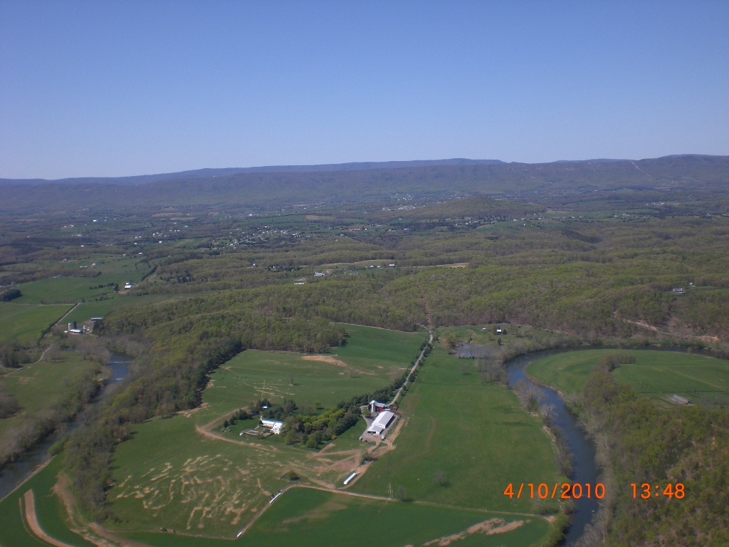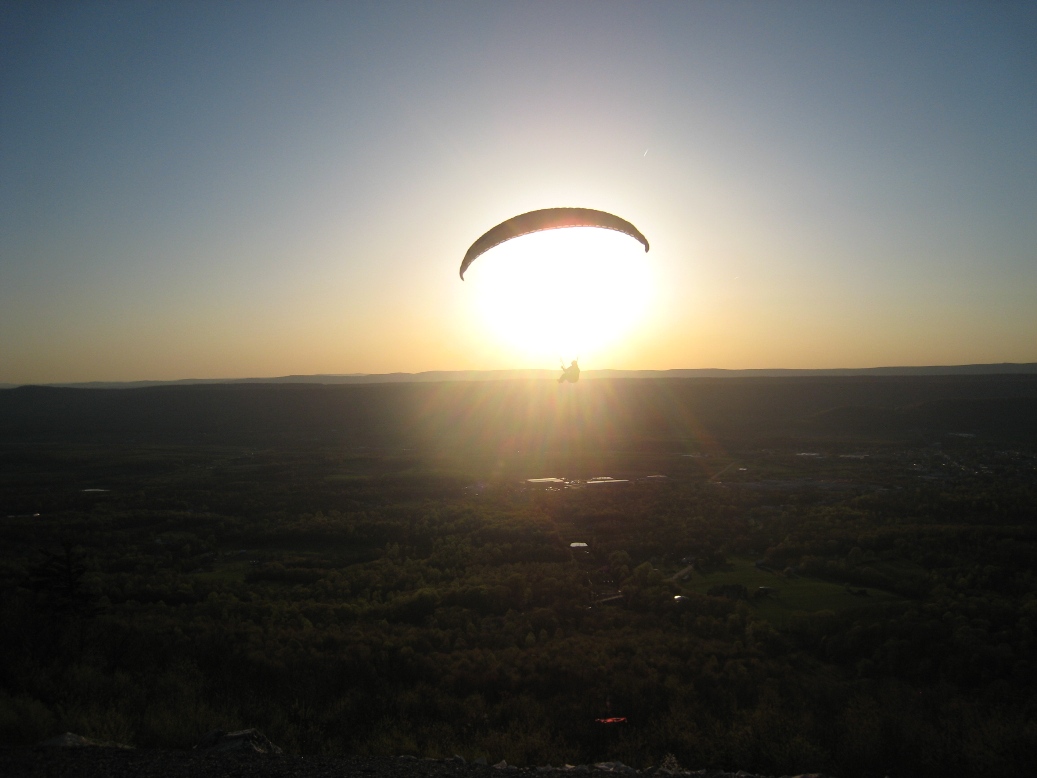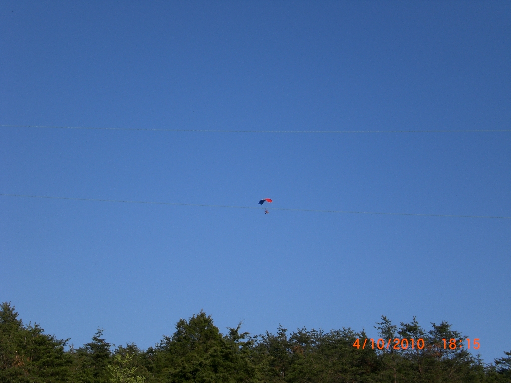 Dan summed it up good. I took off a little past 1:30P in a light cycle, turned right, scratched a good bit between the power line clear cut and launch, then finally climbed in a thermal in the bowl at Cox Ridge to 340' over. Headed NE and dolphin flew with a strong quartering tailwind until I got to near Southfork. Got scraped off the ridge and slowly sank to a nice landing in the huge field on the right side of the mansion. It was fenced in, and soon two guys showed up with trimmed branches on the back of a John Deere vehicle. I used the usual "sorry I landed on your property, I just ran out of air" routine. They just kinda stared at me, so I thought oh crap, they are going to read me the riot act. But they slowly warmed up, and ended up giving me a ride to Mill Road. With helmet in hand, I walked all the way from Rt. 11 to within 2 switchbacks of the top before the paraglider pilot Ron Hott's brother John gave me a ride the rest of the way. Went and got my stuff from Southfork; luckily the gate to the mile long driveway was still open