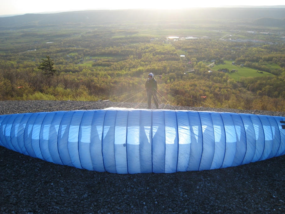 With conditions getting a little more mellow I went out to land so I could return and Observe Greg Sessa. After I landed, Cavanaugh did find an elevator and landed at the school on the back side of the ridge.
