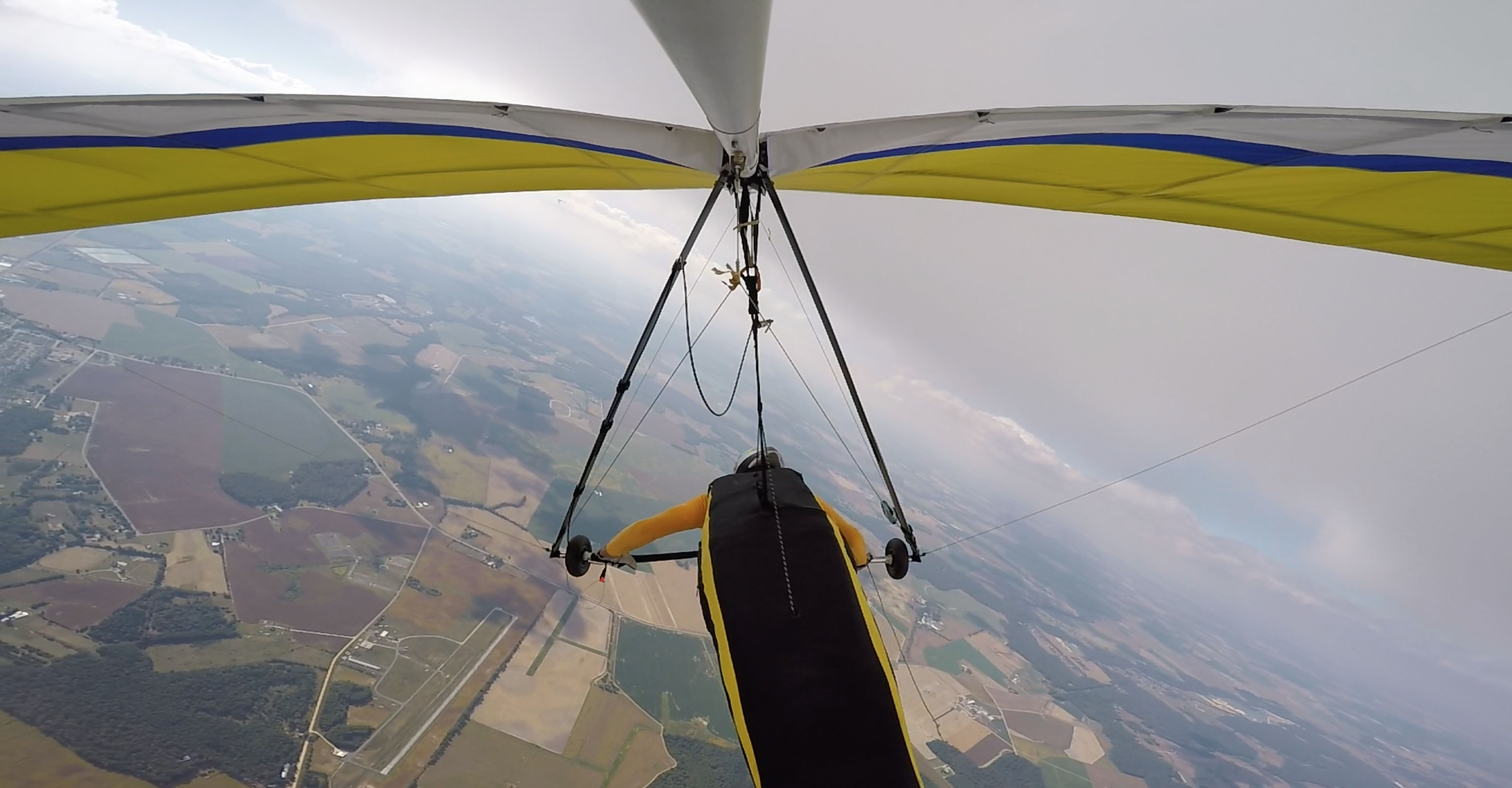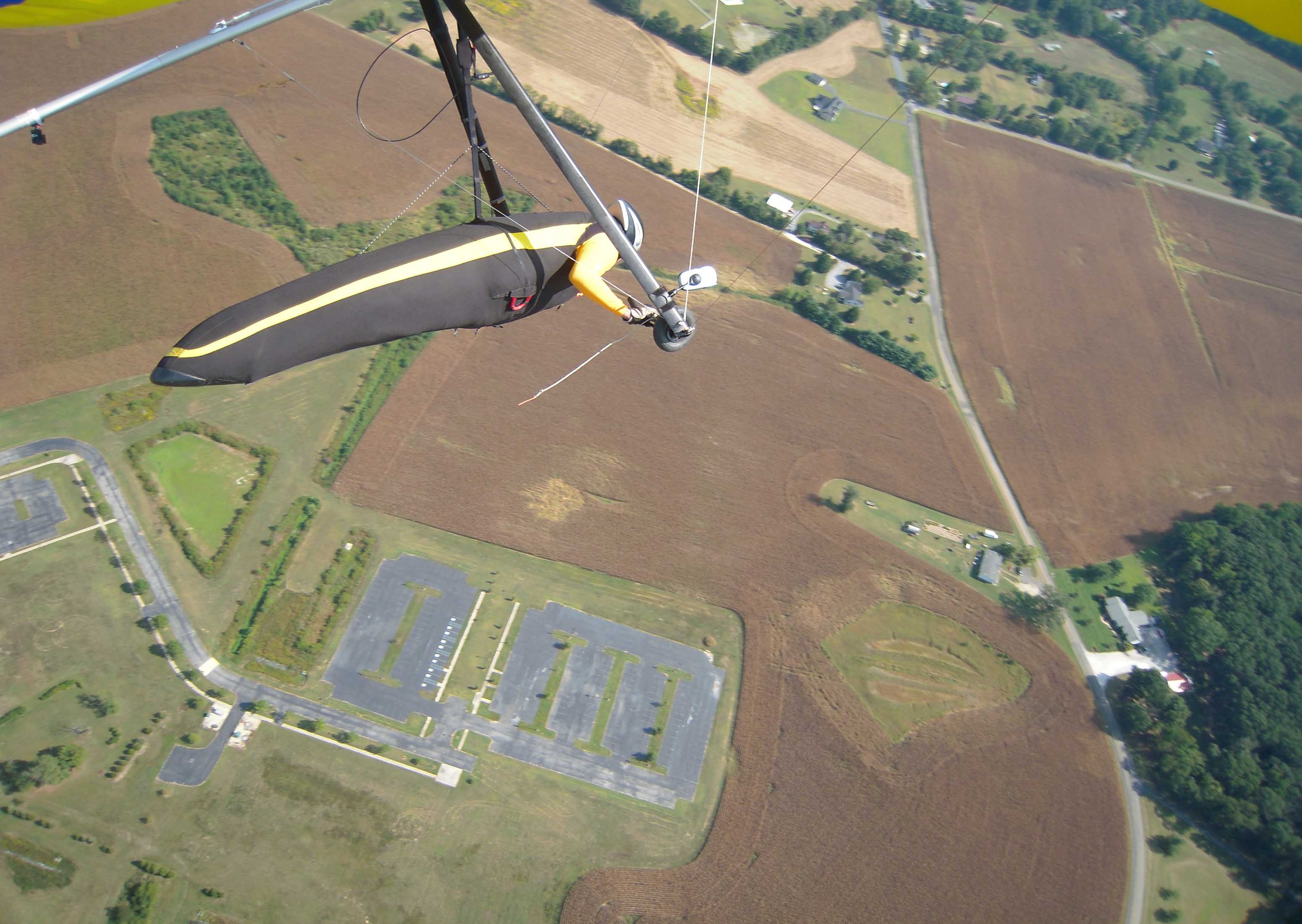 After reaching cloud base on Friday, I would glide to other clouds with mixed results and on two attempts; most of my altitude had been squandered. Here ‘s a sequence of images from one of the low saves that started during the downwind leg of an abandoned landing pattern. As you can see from the photos, the thermal was pretty much centered over the parking lot with little or no drift detected below 3K msl. Above 3K, the core that I was clinging to most likely fused with others and near cloud base (see second image of the first post) there was lift everywhere!