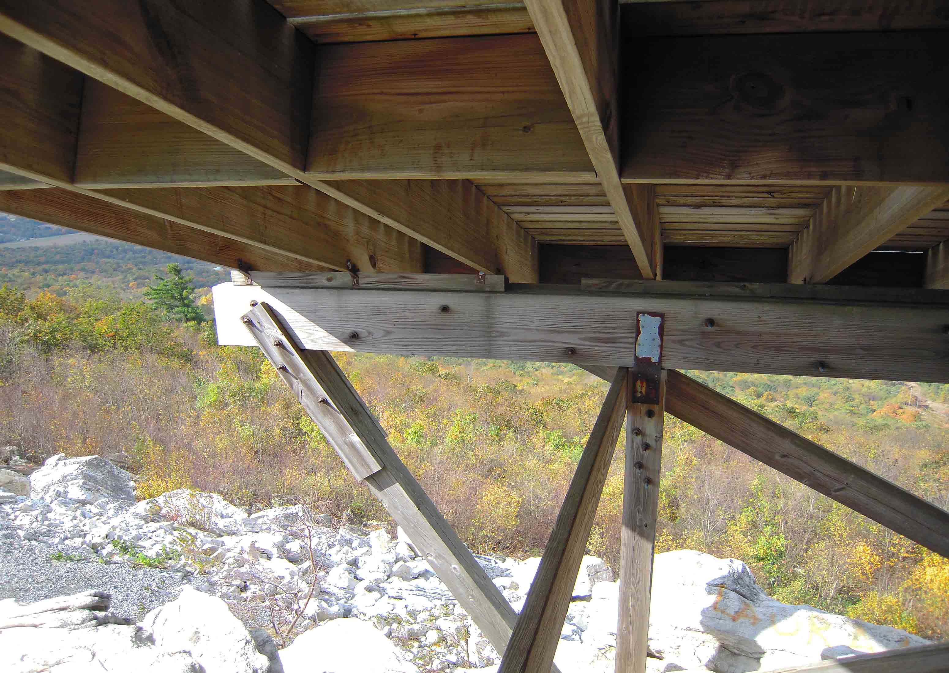 Spent the morning taking a close look at both ramps checking for foundation/structural joint issues and wood fatigue problems. The photos are ordered showing the newer, more northerly ramp, first followed by images of the older ramp. Here are my impressions.