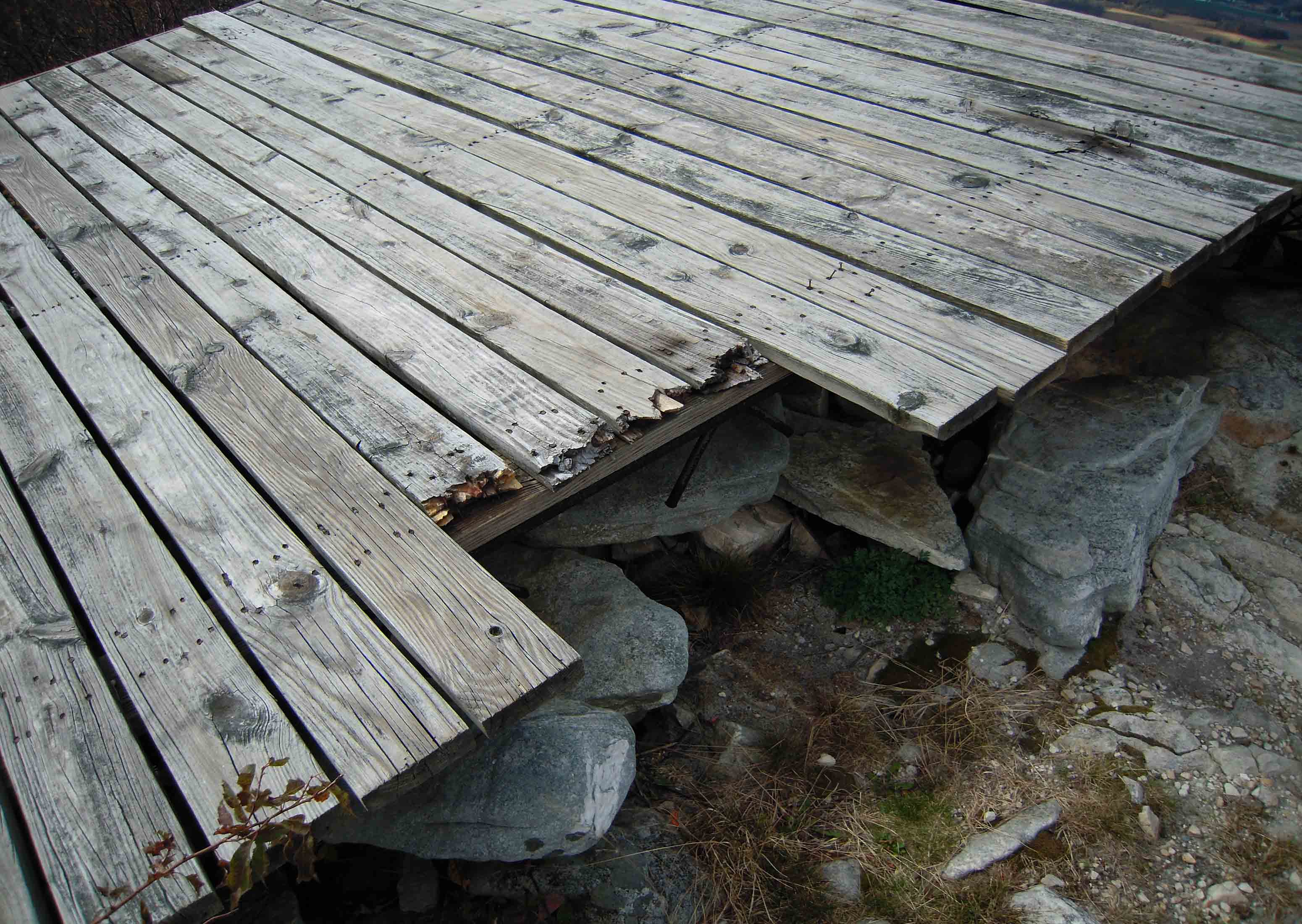South Ramp: Its steel supports and cross beams are solid with no swaying detected during the gale force winds but its wood beams and surface planks have suffered significant amounts of decay with may of its boards broken or showing advanced stages of dry rot. Most of the boards appear to be original (circa late 70’s). It’s my opinion that in its current state, the ramp not safe given that may of its boards may not be able to support weight. In addition to its approach ramp, the launch platform has many “soft” boards that could collapse when experiencing significant weight (a pilot with a glider under negative load).