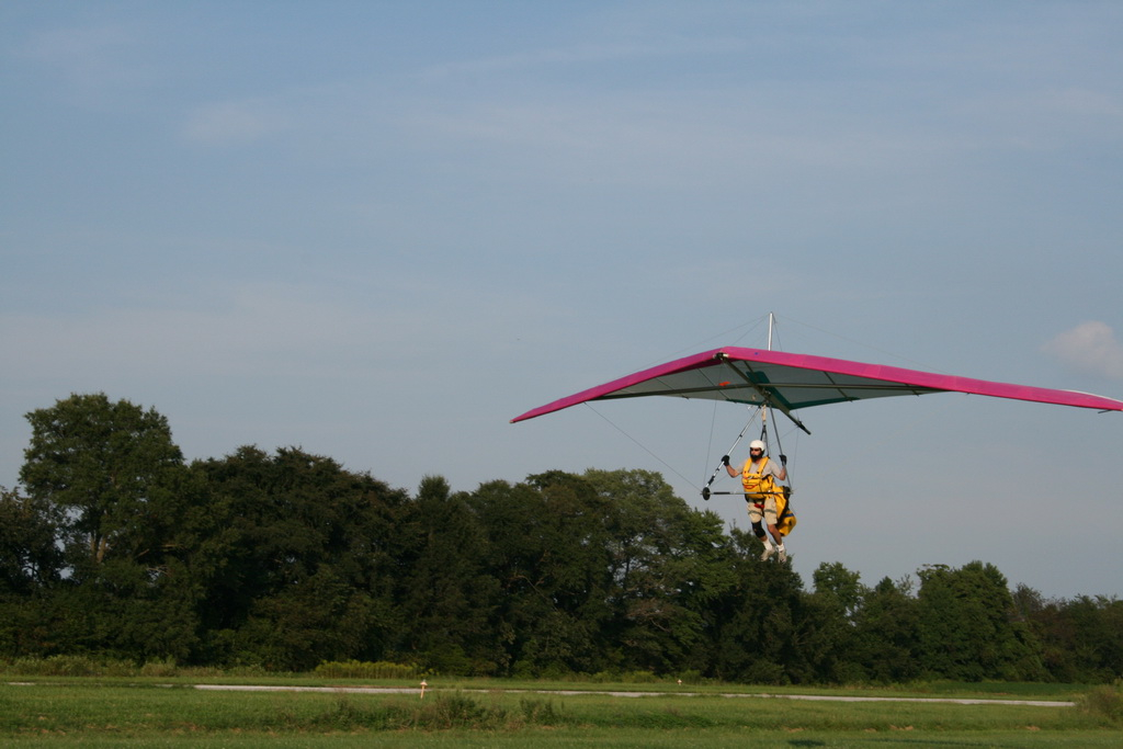 While the Sky-gods and XC-maniacs were out dodging hawks last Sunday, the Wantabes were busy honing and/or “scraping the rust off” their flying skills at Ridgely. Here’s some photos taken by Ran Baron of one of my pattern flights using John Middleton’s Falcon (thanks again John).