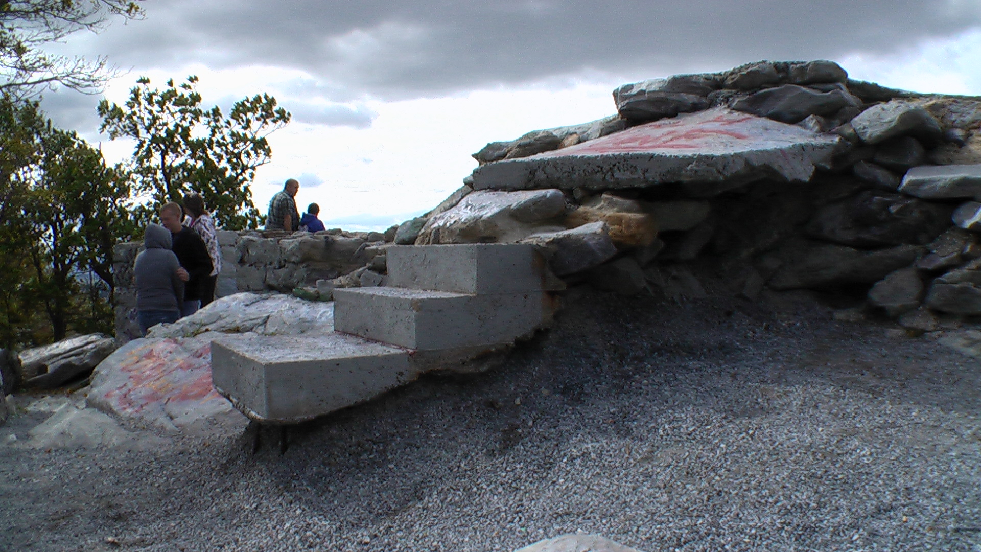 I got a call back from Jim Sterling of Washington County parks, recreation and facilities. He shares our concern about the rapidly deteriorating structure. He may put barriers or at least police tape up to try and keep people off. He will try to get an engineer up there to look at it (but I don't seriously expect any more detailed answer before Thursday). He confirmed that the "pillars" are historical, so any proposal to bust everything down is a non-starter. HOWEVER, he is interested in considering some options for a repair/replacement structure, to include a "wooden" ramp. I reminded Jim that the current rock/concrete structure was built as it was because the previous one had been burnt down in an act of vandalism. But he countered with the idea of some less flammable man-made material such as deck boards made out of recycled plastic (slippery?). I invited him to look at the Pulpit elevated ramps for examples of structures with metal trusses underneath and decking on top. He is even interested in seeing photos of radial ramps such as at Henson's Gap in Tennessee and, now, Ellensville NY. (Could use some tech support in downloading and transmitting such pictures (to my e-mail: mcelrah@gmail.com and I will retransmit to Mr. Sterling).) I also told him the story about the rebar, so he may be willing to consider a more durable rock/concrete solution this time. I asked about what support the county could provide. Any machinery would have to be operated by county employees (e.g. a front-loader to get materials close to the structure) and that means normal working hours - so we volunteers would have to be willing to take a day off to do construction work.