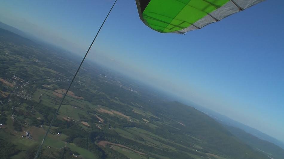Yesterday the trees along route 66 were waving their limbs all over the place, giving pause to any rational pilot with aviation in mind. However, at 12:30 pm the "Woodstock effect" was in evidence where the winds at launch were straight in at 7 - 9 MPH with gusts to 12:5. (Reading taken from well forward in slot from hand extended in the air). At 1:00 pm it was still straight in at 7 - 10 MPH with gusts of 13 MPH; but at 2:00 pm it ramped up some showing 12 - 15 MPH with a very occasional gust to 17 MPH. Ashley, Dan Tuck, Gary Smith, and I, based on the forecast, were mindful of possible higher winds at altitude and waited until after five to launch, when wind direction and velocity were similar to the 2:00 pm readings. I launched after Ashley into abundant lift which, as Dan mentioned, extended well out into the valley. I flew well away from the ridge to about halfway to Strasburg, then turned around, and at about 5,600 ft MSL flew past and well in front of Edinburg Gap. My flight path was just SE of Route 11, did not go below 5,000 MSL and wind velocity did not increase noticeably with altitude. At about 7:15 pm I reached New Market with 4,800 ft MSL but decided to land anyway. I would not have reached Harrisonburg before 8:00 pm, and I didn't want to complicate the retrieval. Thanks Bacil for ferrying pilots back to launch, and also Ashley for the retrieve.