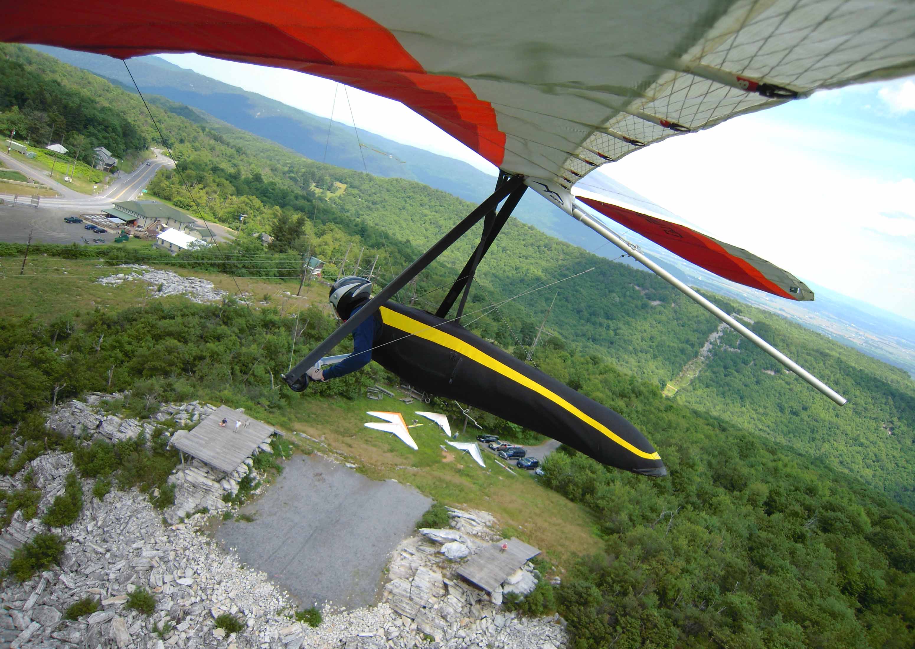 Kind of a funky day at the Pulpit. Fairly strong north cross and some punchy air. I carpooled with David B. and we got there around 11am to find Ward setting up. A handful of other pilots showed up too. Good to see everybody!
