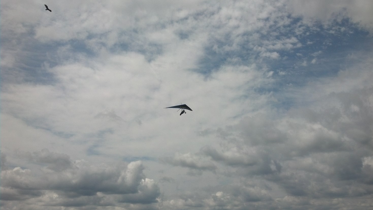 Oh! And what else???? A new shiny crispy glider for Charlie???? Yup, and he kicked ass on it! Bacil and Charlie both got some miles! Eric Kriner from PA, visiting the site? He soared! And who else? John M, great flight! Anthony, ditto! Rich B had a short one, but got up! Chuck OK elected not to fly because he wasn't feeling all that great, but helped with a bunch of launches. All in all, a wonderful day. Hopefully we'll hear more details from B & C about their flights.