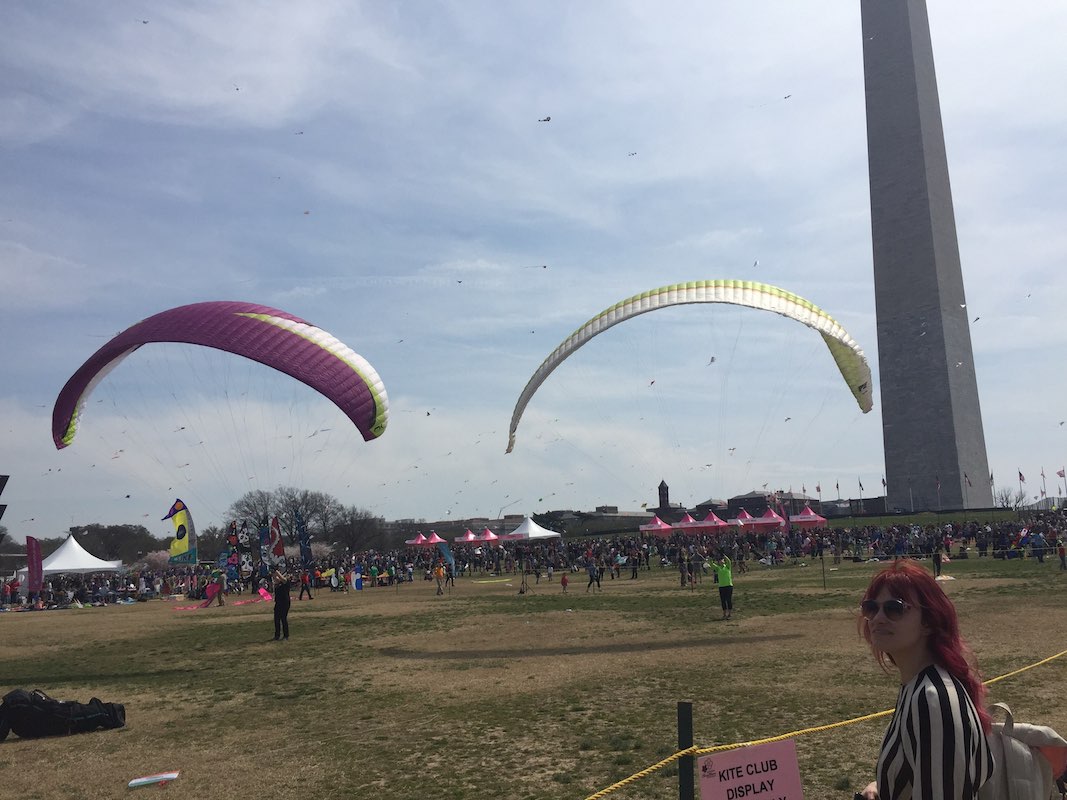 From Tommy Powers, "For those who made it out to the Blossom Kite Festival, we could not have asked for a better day! We had some prime real estate for glider display, and if Donnie had taken a look out the back window of the White House he would have seen us CHGPA folks in his direct line of sight to the Washington Monument. We even got some special attention from the Secret Service on this one! Many thanks to Krista Auchenbach, Lisa Davis, and Jeff George for coming out and getting some kiting demonstrations in. We even had our own “Kite Club” kiting area set up by the Park Service just adjacent to the HG displays! Once kiting began, we had a lot of interested people inquiring about our sport. The crowds were pretty massive for the day, and I was able to get my very slowest bike ride ever around the mall after the event, but one of the most satisfying rides ever. The cherry blossoms were in full bloom and never have I seen such a gorgeous display in all the years attending the kite festival. Many thanks again to Krista, Lisa, Jeff, and all the other club members who stopped by for their annual checkup and kite fix – we really had a great day! "