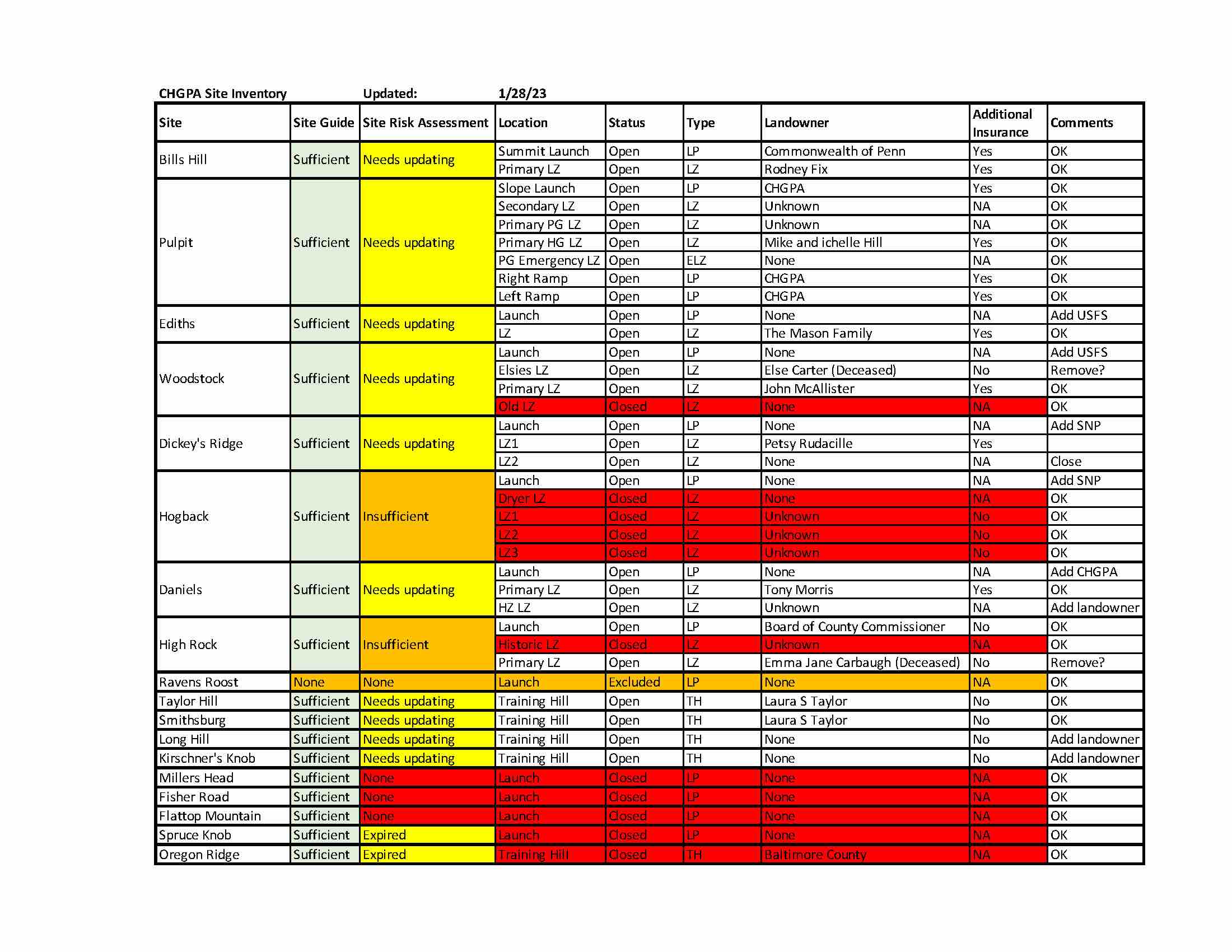 We currently have a total of 18 sites and 40+ flying “locations” that we maintain in the USHPA RRG database: