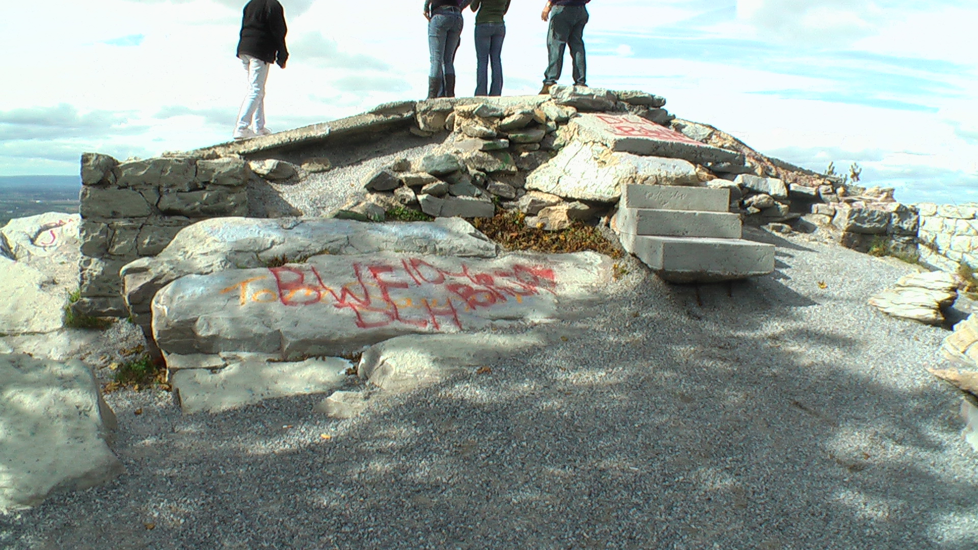 I got a call back from Jim Sterling of Washington County parks, recreation and facilities. He shares our concern about the rapidly deteriorating structure. He may put barriers or at least police tape up to try and keep people off. He will try to get an engineer up there to look at it (but I don't seriously expect any more detailed answer before Thursday). He confirmed that the "pillars" are historical, so any proposal to bust everything down is a non-starter. HOWEVER, he is interested in considering some options for a repair/replacement structure, to include a "wooden" ramp. I reminded Jim that the current rock/concrete structure was built as it was because the previous one had been burnt down in an act of vandalism. But he countered with the idea of some less flammable man-made material such as deck boards made out of recycled plastic (slippery?). I invited him to look at the Pulpit elevated ramps for examples of structures with metal trusses underneath and decking on top. He is even interested in seeing photos of radial ramps such as at Henson's Gap in Tennessee and, now, Ellensville NY. (Could use some tech support in downloading and transmitting such pictures (to my e-mail: mcelrah@gmail.com and I will retransmit to Mr. Sterling).) I also told him the story about the rebar, so he may be willing to consider a more durable rock/concrete solution this time. I asked about what support the county could provide. Any machinery would have to be operated by county employees (e.g. a front-loader to get materials close to the structure) and that means normal working hours - so we volunteers would have to be willing to take a day off to do construction work.