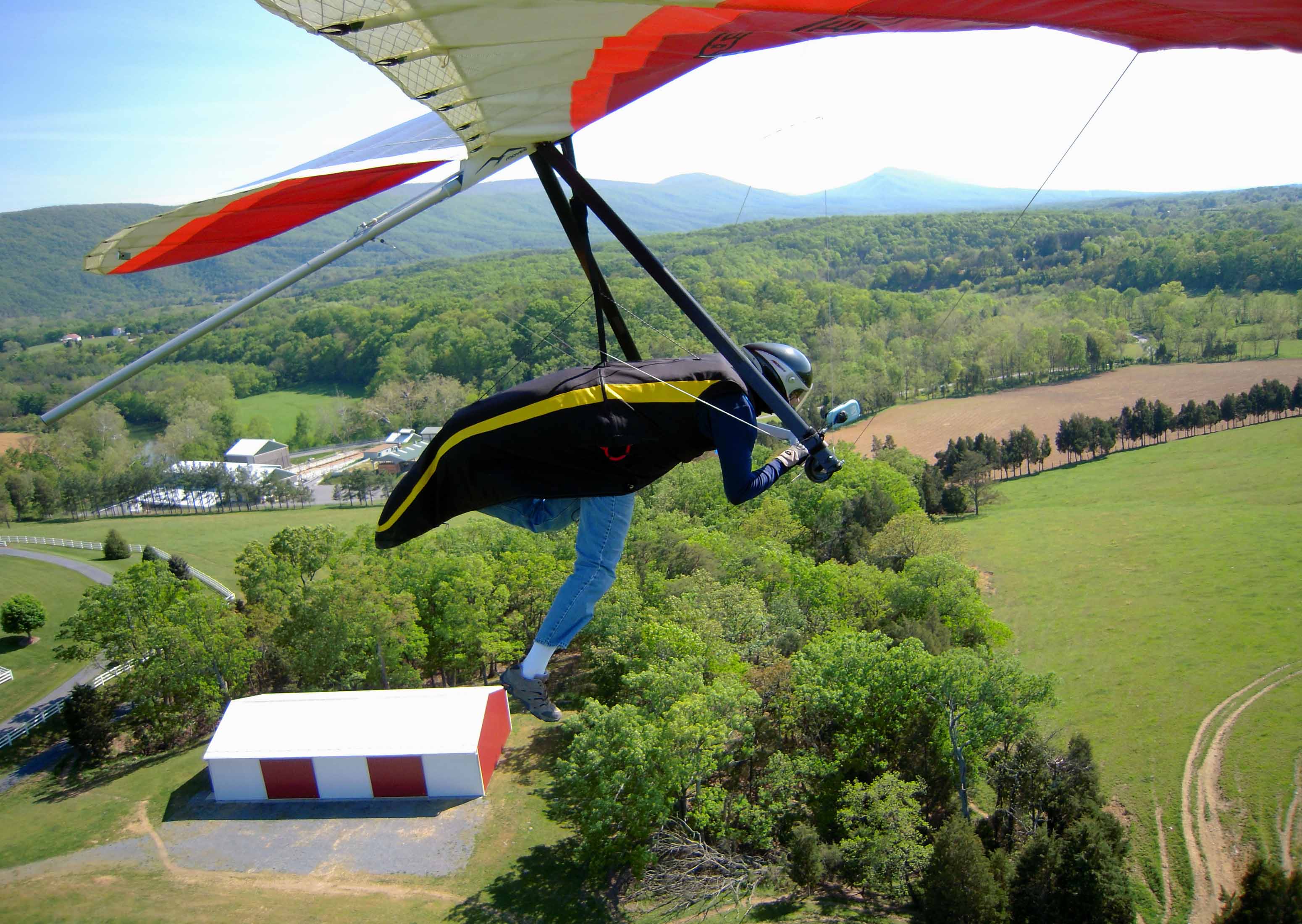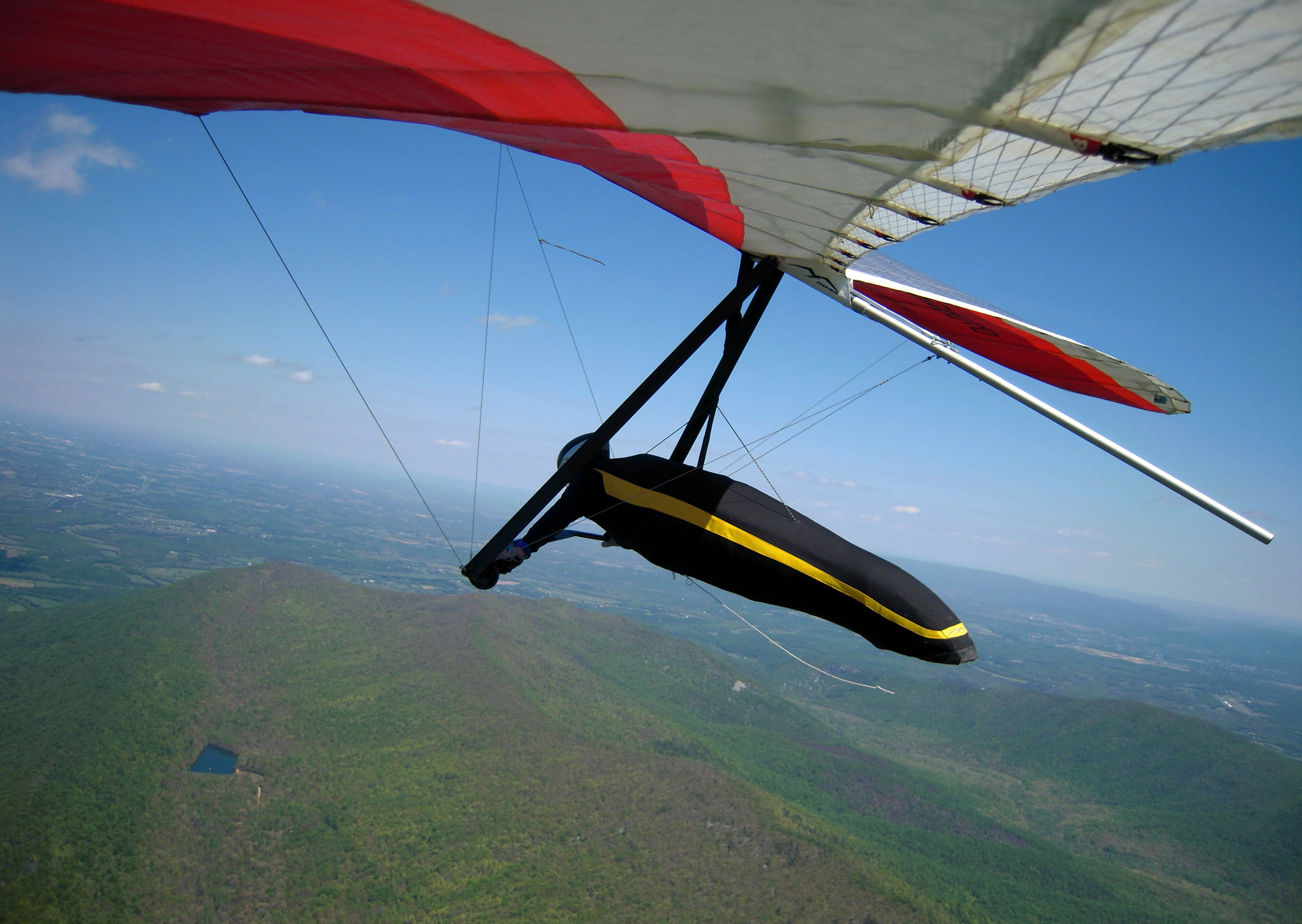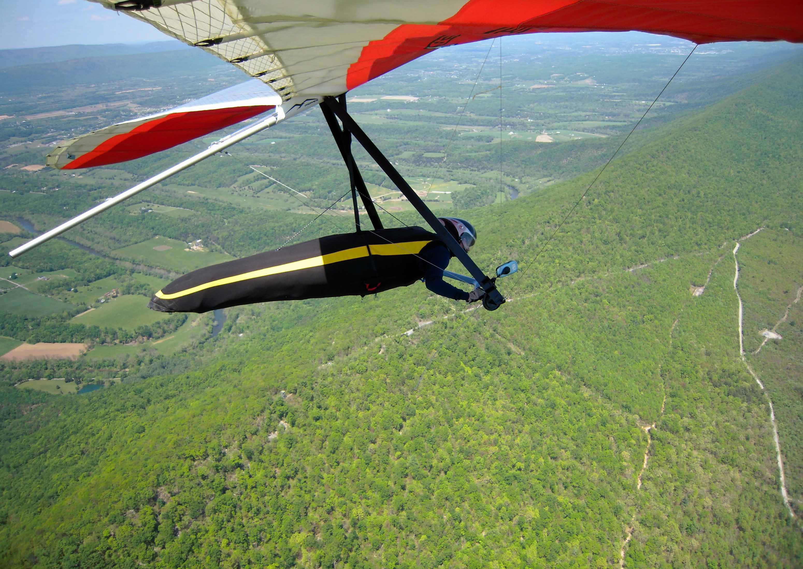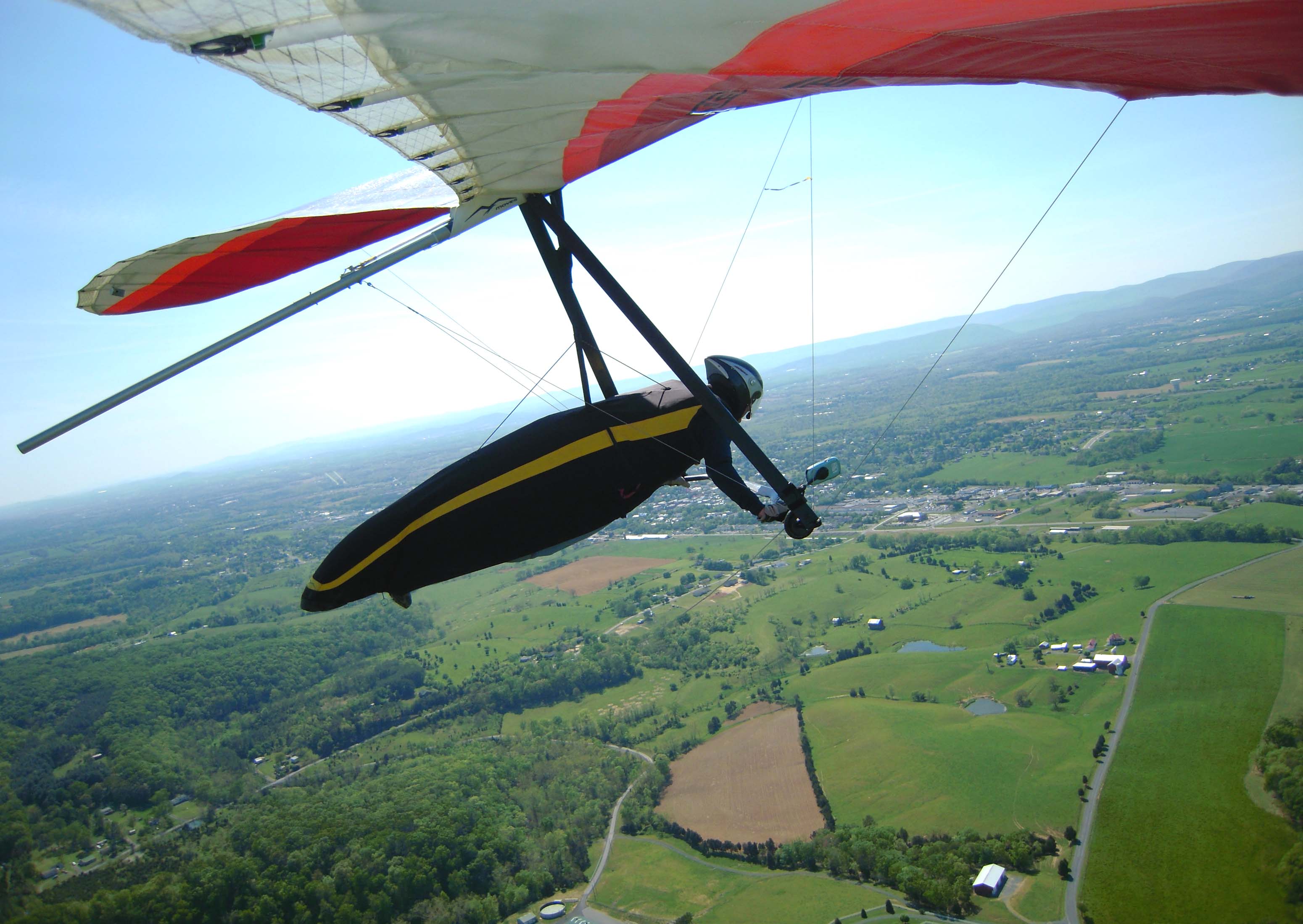 The forecast was for fairly strong winds, straight in, at launch and the drive out made it seem like that was certainly going to be the case. Earlier on in the morning the sky was almost overcast but every hour that went by the sky dried up more and more until it was mostly blue sky by afternoon. At launch there were strong thermic cycles rolling through often enough, but no freight trains and plenty of very launchable cycles, and there was a definite west component to the wind. I launched just before 2pm into a thermal that elevatored me right out of the slot. Matt launched not long after and we headed north up the ridge. Found lots of strong thermal activity along the ridge to the north......encountered some really strong lift and had a super cool encounter with an immature bald eagle. He showed me his talons and then disappeared right behind me...I swear for a second I thought he was going to tap on my king post or something but then he returned to my wing tip and and just hung out for a bit. Was considering heading over the back to the Front Royal Airport once I got down to the reservoir but never seemed to get comfortable enough with the idea as I was having trouble staying above 4200msl at the time. I was hoping for that nice big thermal to come and drift over with it but I just couldn't make it happen. Probably could have made it over without issue at my altitude anyway, next time. After playing around down on the north end I thought it would be cool to try and land in this large field on Rt 11 (the really big one where the river comes close to Rt 11 at the entrance to Strasburg) that I had fallen short of last time and landed off of Funk Rd instead. I headed off the ridge at about 4000'msl and immediately started losing altitude as I did last time.....I thought here we go again. I briefly considered tucking tail and heading back to the ridge but thought.....what the heck, its been a great flight already and if I land out short of the goal, then at least i don't have to battle the west cross on the way back. About half way out into the valley I found some lift that put my target back in reach and not long after I found the best thermal of the day for me that got me up to 5000'msl. Things had definitely turned on even more by this time which was right around 3pm and the thermals seemed to be much larger in size and more organized throughout. I definitely had the target field made now