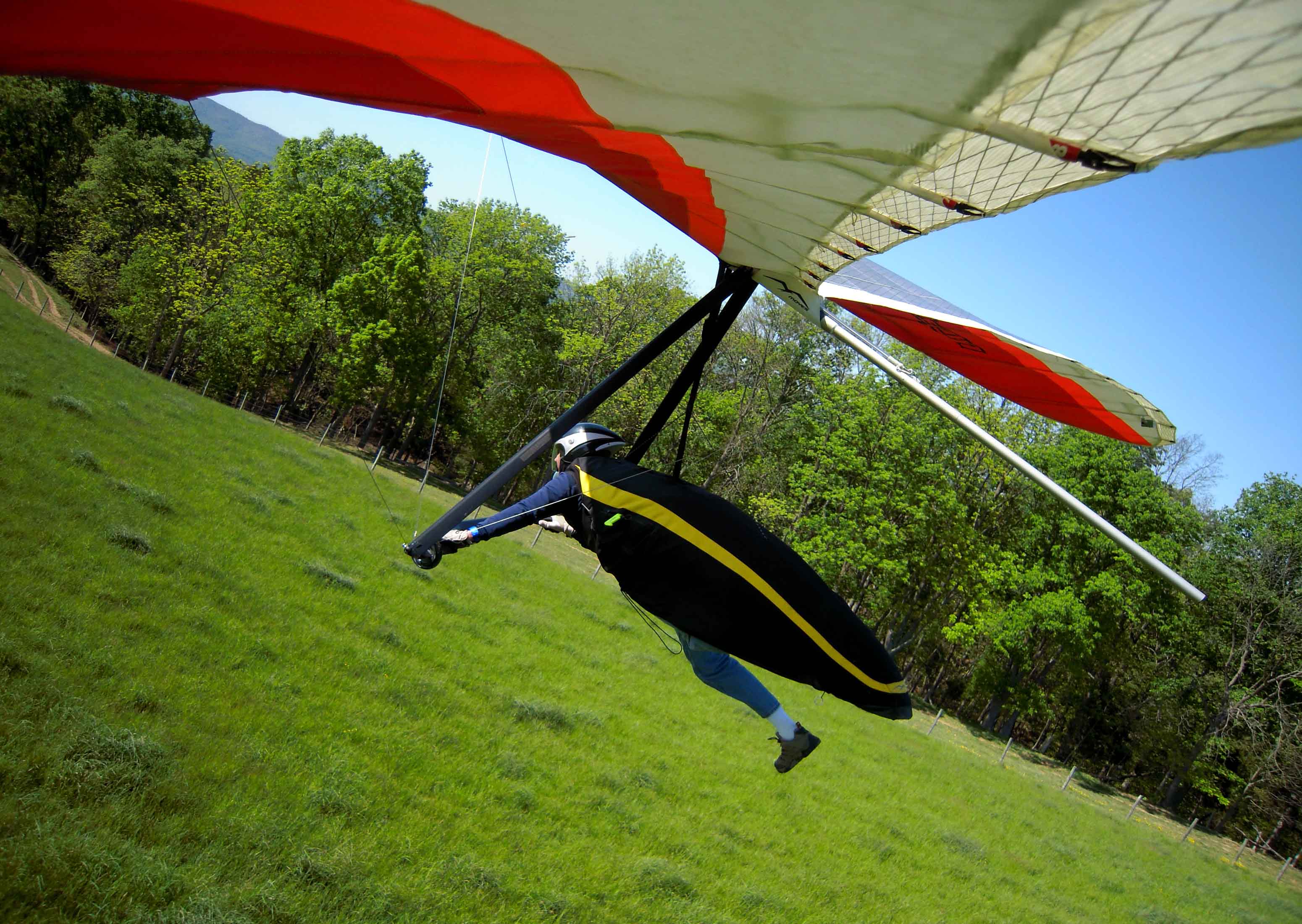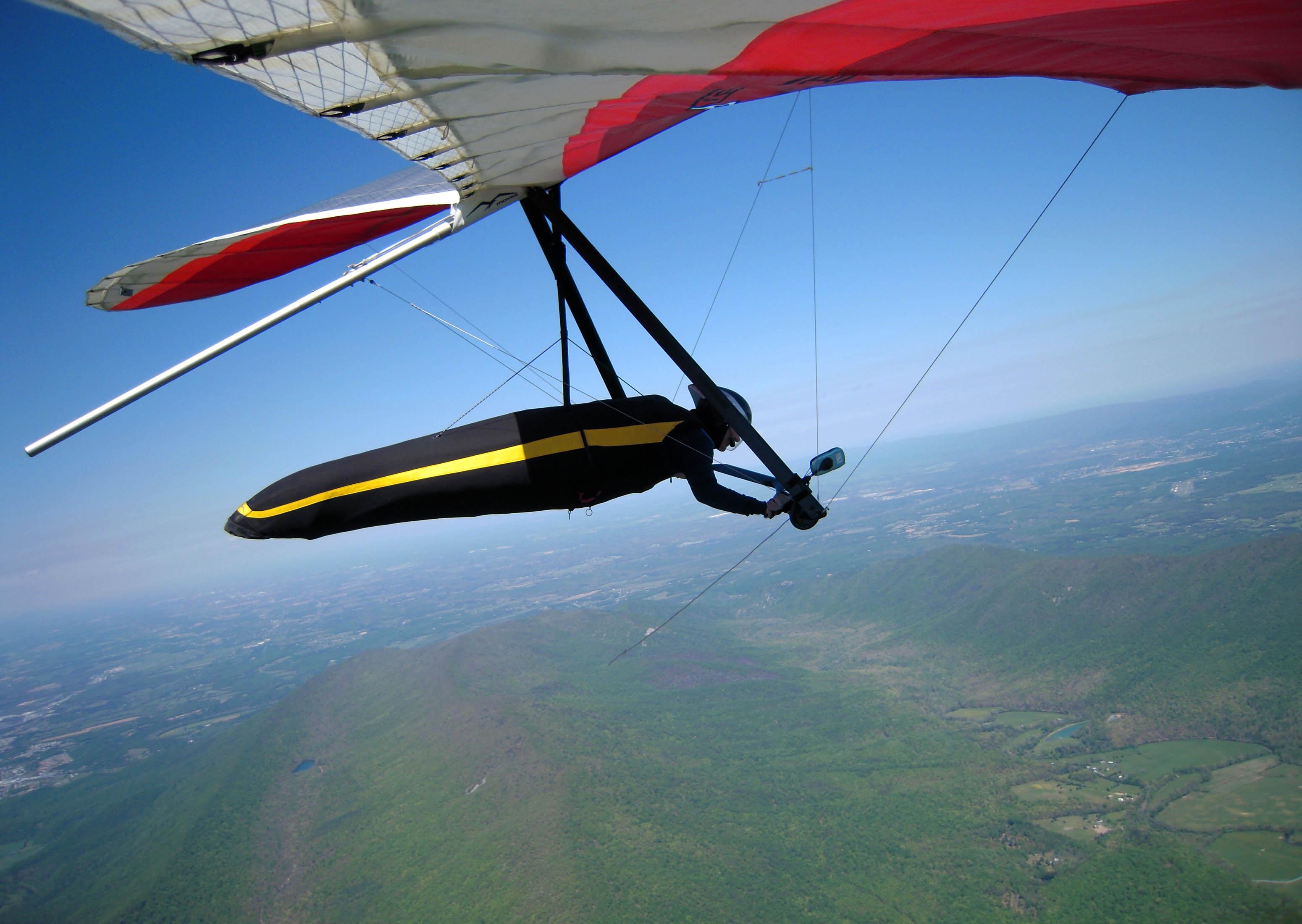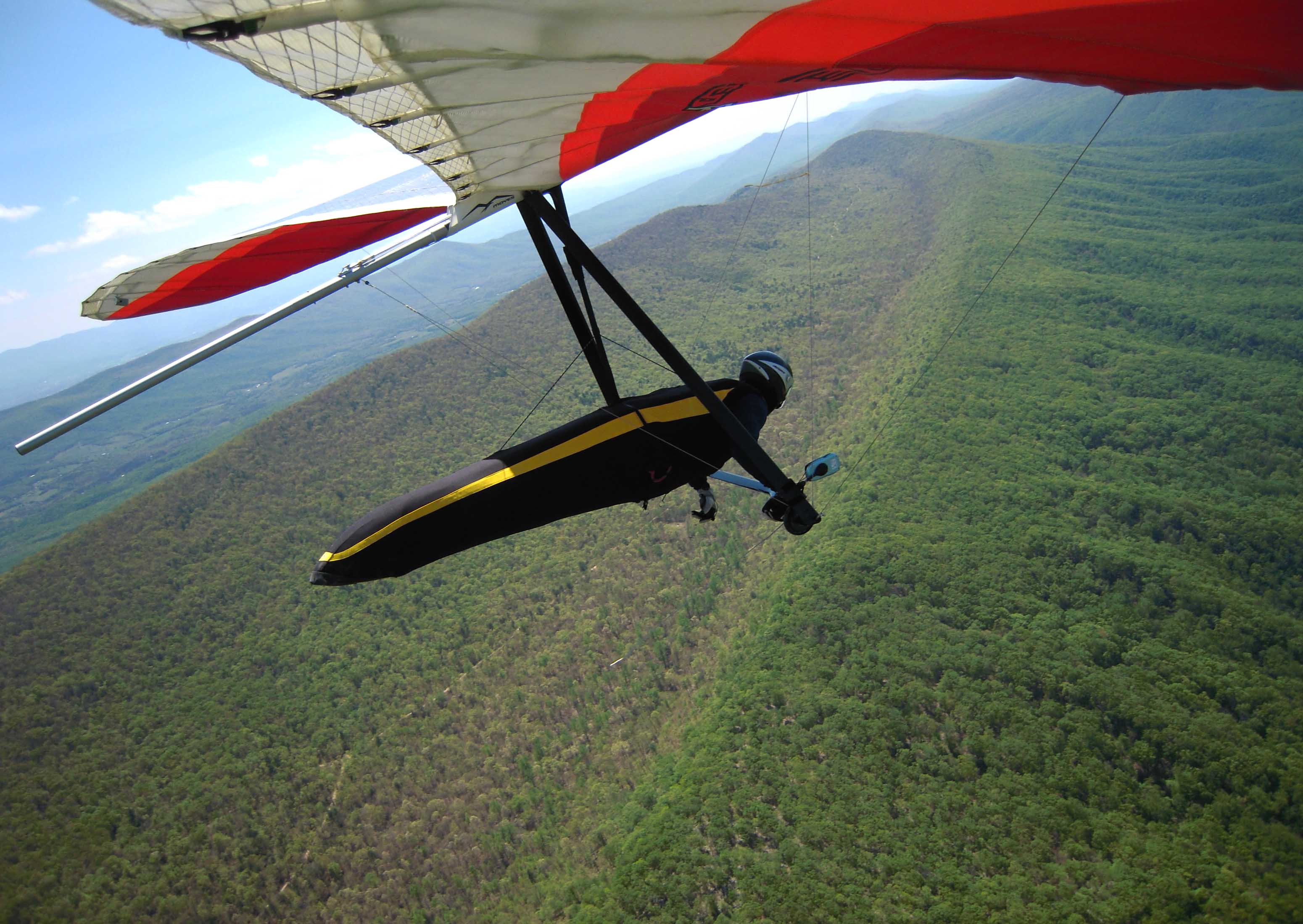 The forecast was for fairly strong winds, straight in, at launch and the drive out made it seem like that was certainly going to be the case. Earlier on in the morning the sky was almost overcast but every hour that went by the sky dried up more and more until it was mostly blue sky by afternoon. At launch there were strong thermic cycles rolling through often enough, but no freight trains and plenty of very launchable cycles, and there was a definite west component to the wind. I launched just before 2pm into a thermal that elevatored me right out of the slot. Matt launched not long after and we headed north up the ridge. Found lots of strong thermal activity along the ridge to the north......encountered some really strong lift and had a super cool encounter with an immature bald eagle. He showed me his talons and then disappeared right behind me...I swear for a second I thought he was going to tap on my king post or something but then he returned to my wing tip and and just hung out for a bit. Was considering heading over the back to the Front Royal Airport once I got down to the reservoir but never seemed to get comfortable enough with the idea as I was having trouble staying above 4200msl at the time. I was hoping for that nice big thermal to come and drift over with it but I just couldn't make it happen. Probably could have made it over without issue at my altitude anyway, next time. After playing around down on the north end I thought it would be cool to try and land in this large field on Rt 11 (the really big one where the river comes close to Rt 11 at the entrance to Strasburg) that I had fallen short of last time and landed off of Funk Rd instead. I headed off the ridge at about 4000'msl and immediately started losing altitude as I did last time.....I thought here we go again. I briefly considered tucking tail and heading back to the ridge but thought.....what the heck, its been a great flight already and if I land out short of the goal, then at least i don't have to battle the west cross on the way back. About half way out into the valley I found some lift that put my target back in reach and not long after I found the best thermal of the day for me that got me up to 5000'msl. Things had definitely turned on even more by this time which was right around 3pm and the thermals seemed to be much larger in size and more organized throughout. I definitely had the target field made now