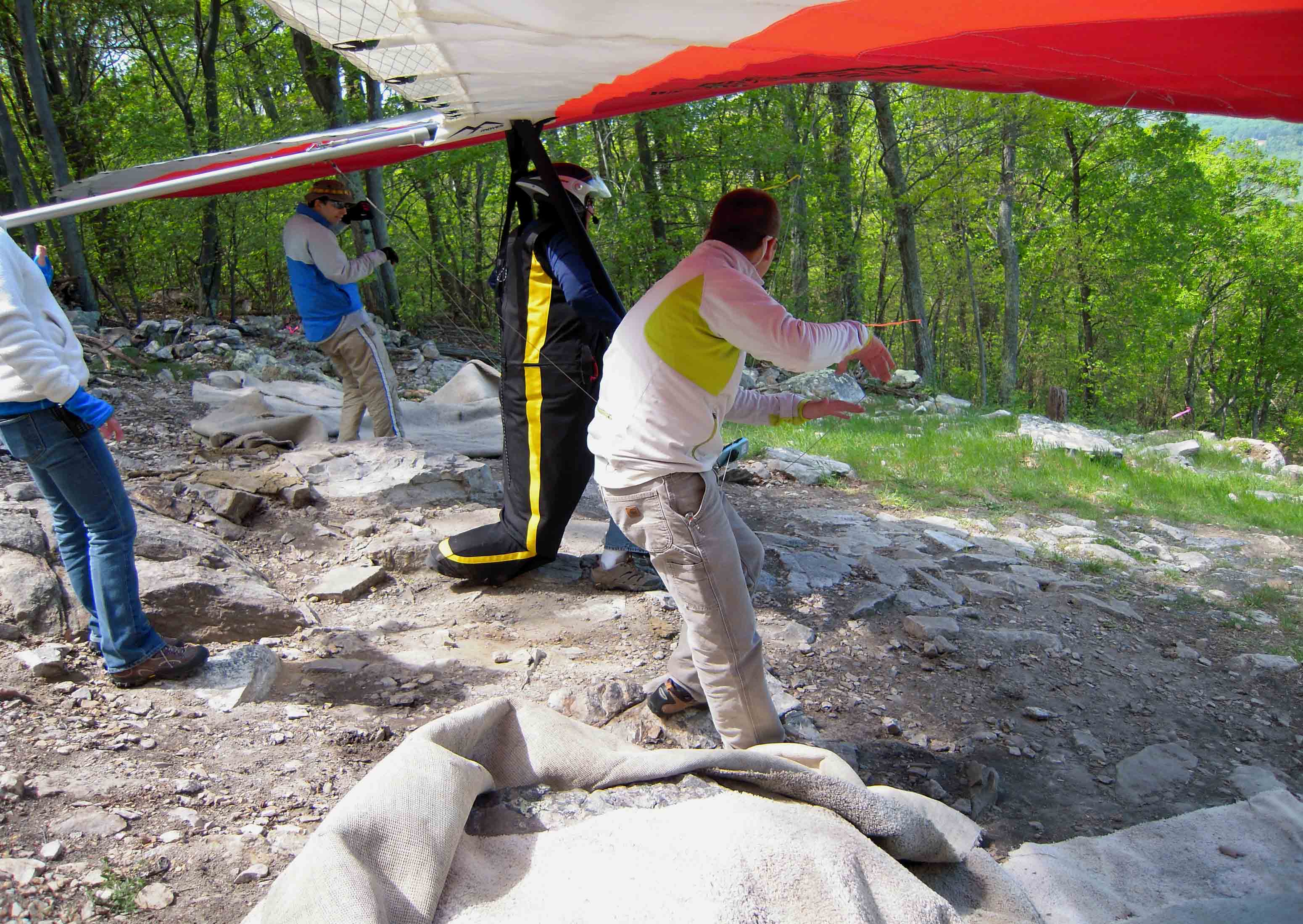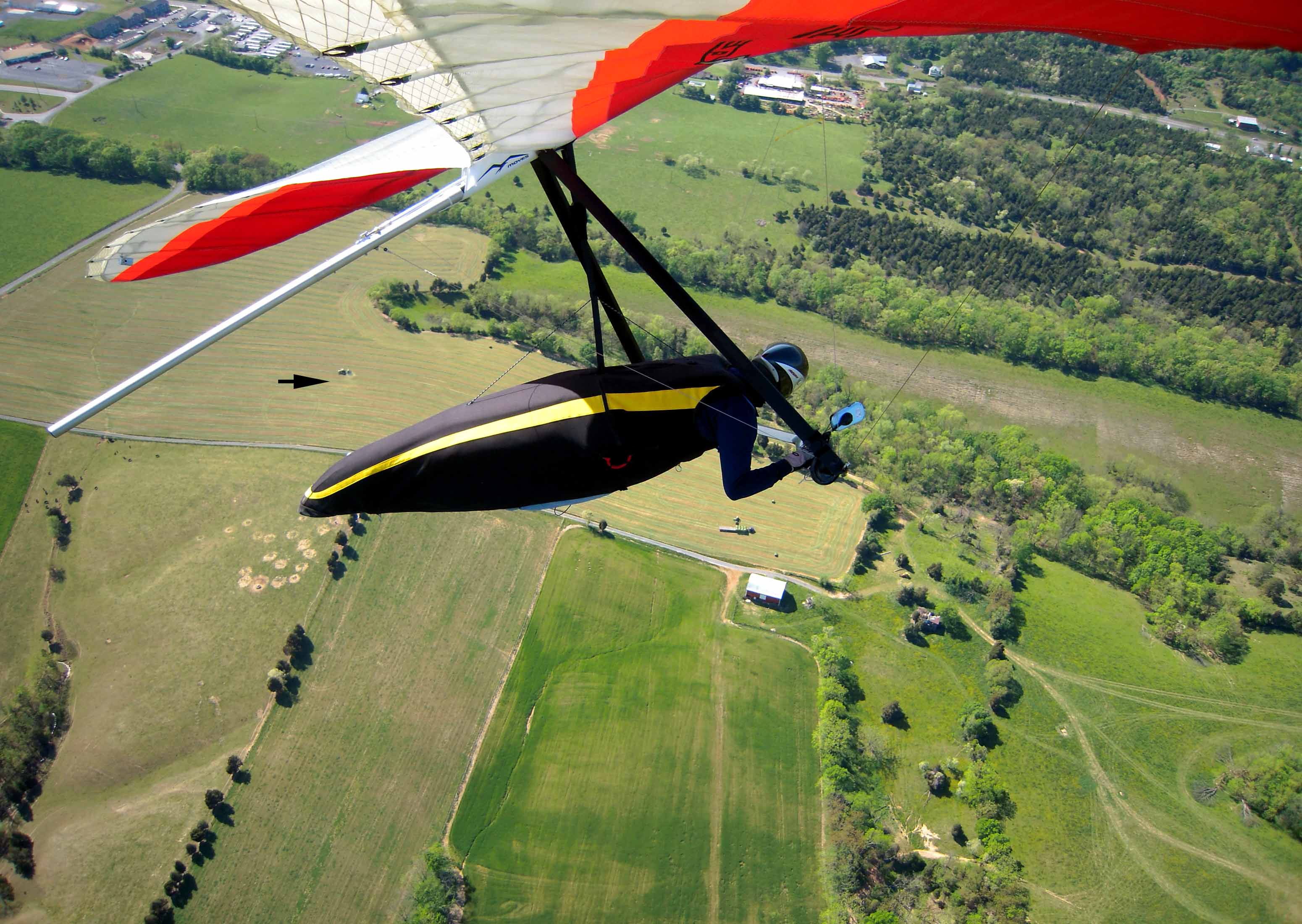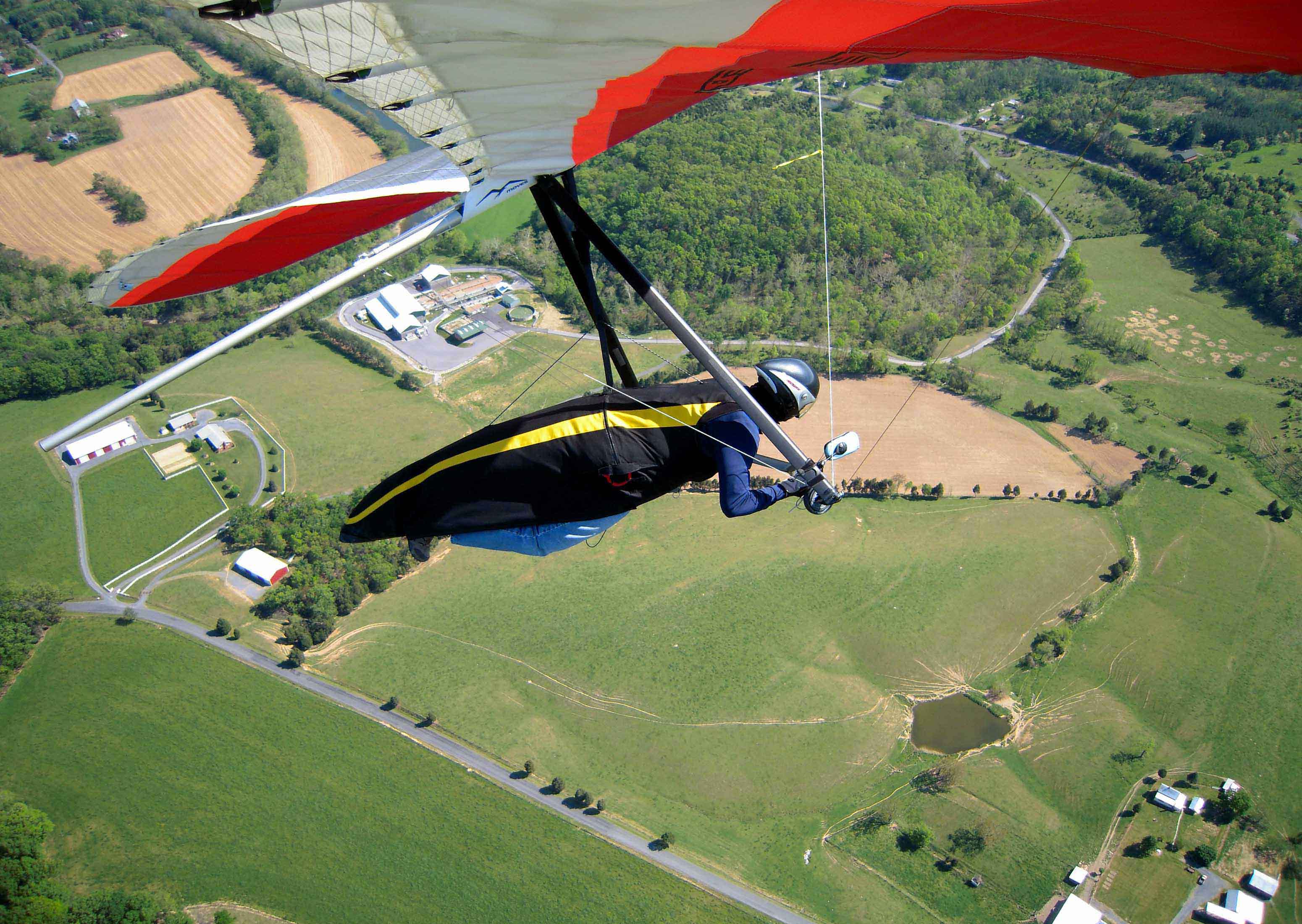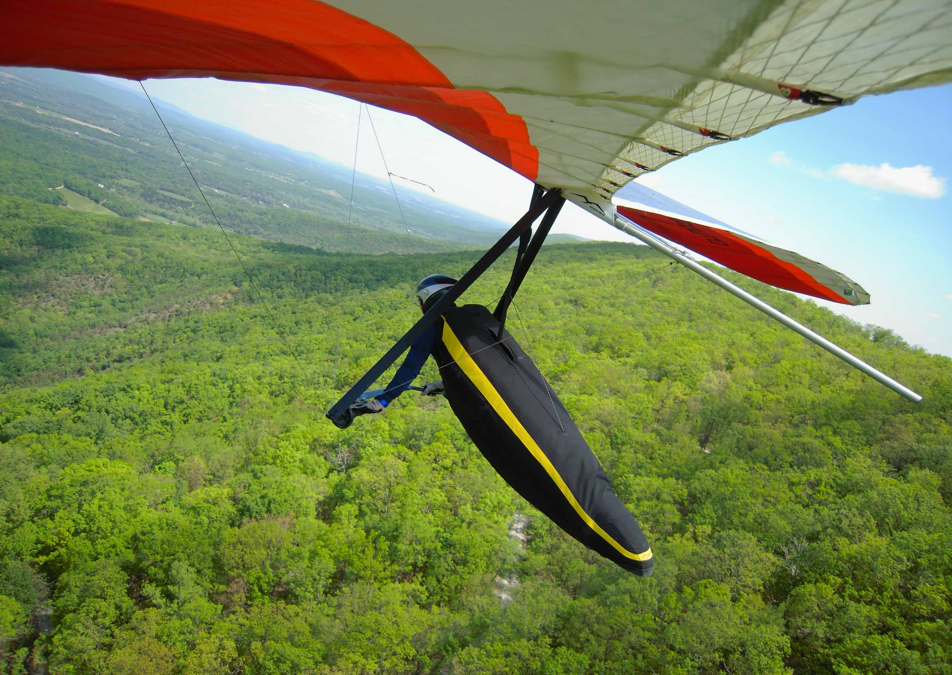 The forecast was for fairly strong winds, straight in, at launch and the drive out made it seem like that was certainly going to be the case. Earlier on in the morning the sky was almost overcast but every hour that went by the sky dried up more and more until it was mostly blue sky by afternoon. At launch there were strong thermic cycles rolling through often enough, but no freight trains and plenty of very launchable cycles, and there was a definite west component to the wind. I launched just before 2pm into a thermal that elevatored me right out of the slot. Matt launched not long after and we headed north up the ridge. Found lots of strong thermal activity along the ridge to the north......encountered some really strong lift and had a super cool encounter with an immature bald eagle. He showed me his talons and then disappeared right behind me...I swear for a second I thought he was going to tap on my king post or something but then he returned to my wing tip and and just hung out for a bit. Was considering heading over the back to the Front Royal Airport once I got down to the reservoir but never seemed to get comfortable enough with the idea as I was having trouble staying above 4200msl at the time. I was hoping for that nice big thermal to come and drift over with it but I just couldn't make it happen. Probably could have made it over without issue at my altitude anyway, next time. After playing around down on the north end I thought it would be cool to try and land in this large field on Rt 11 (the really big one where the river comes close to Rt 11 at the entrance to Strasburg) that I had fallen short of last time and landed off of Funk Rd instead. I headed off the ridge at about 4000'msl and immediately started losing altitude as I did last time.....I thought here we go again. I briefly considered tucking tail and heading back to the ridge but thought.....what the heck, its been a great flight already and if I land out short of the goal, then at least i don't have to battle the west cross on the way back. About half way out into the valley I found some lift that put my target back in reach and not long after I found the best thermal of the day for me that got me up to 5000'msl. Things had definitely turned on even more by this time which was right around 3pm and the thermals seemed to be much larger in size and more organized throughout. I definitely had the target field made now