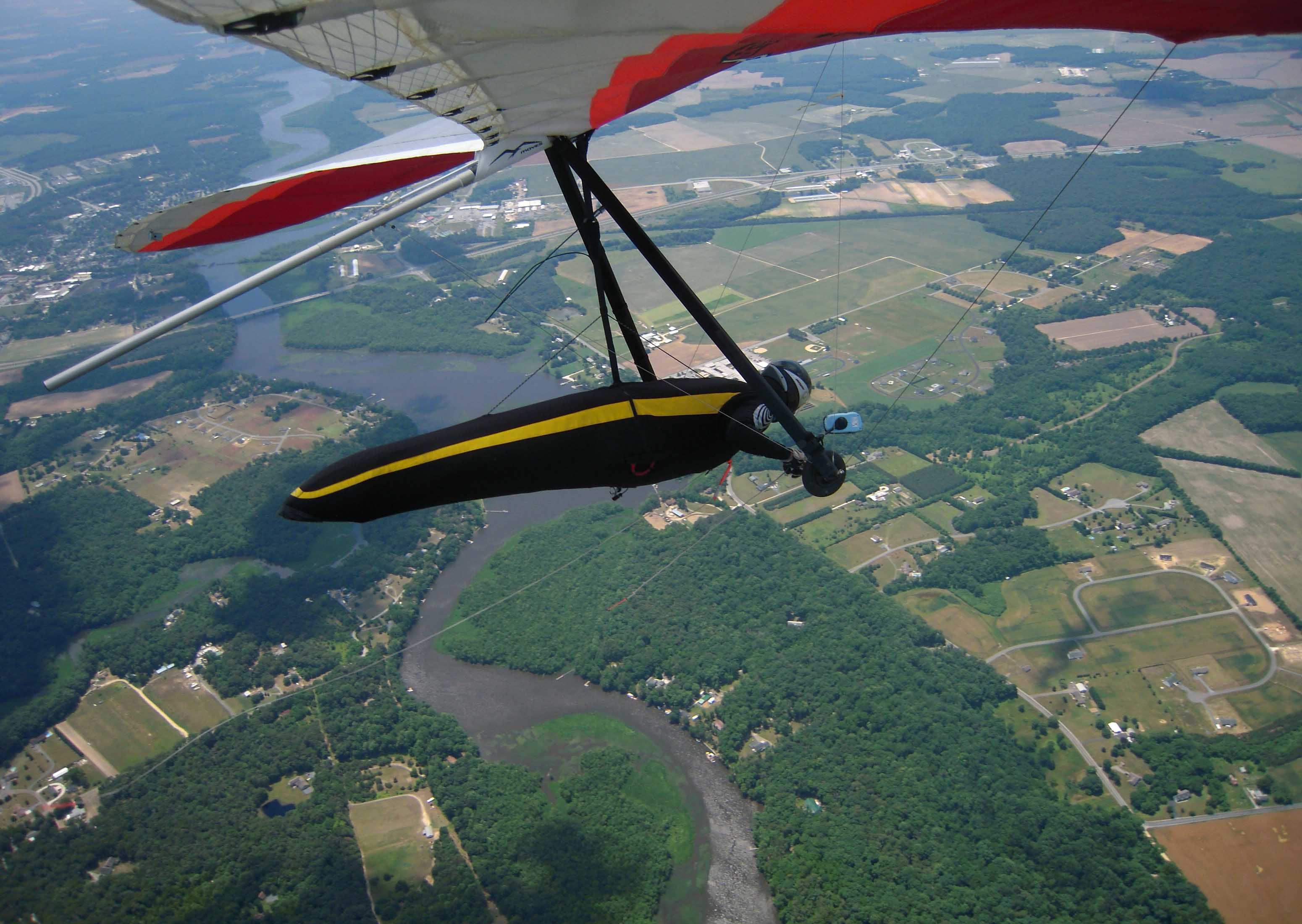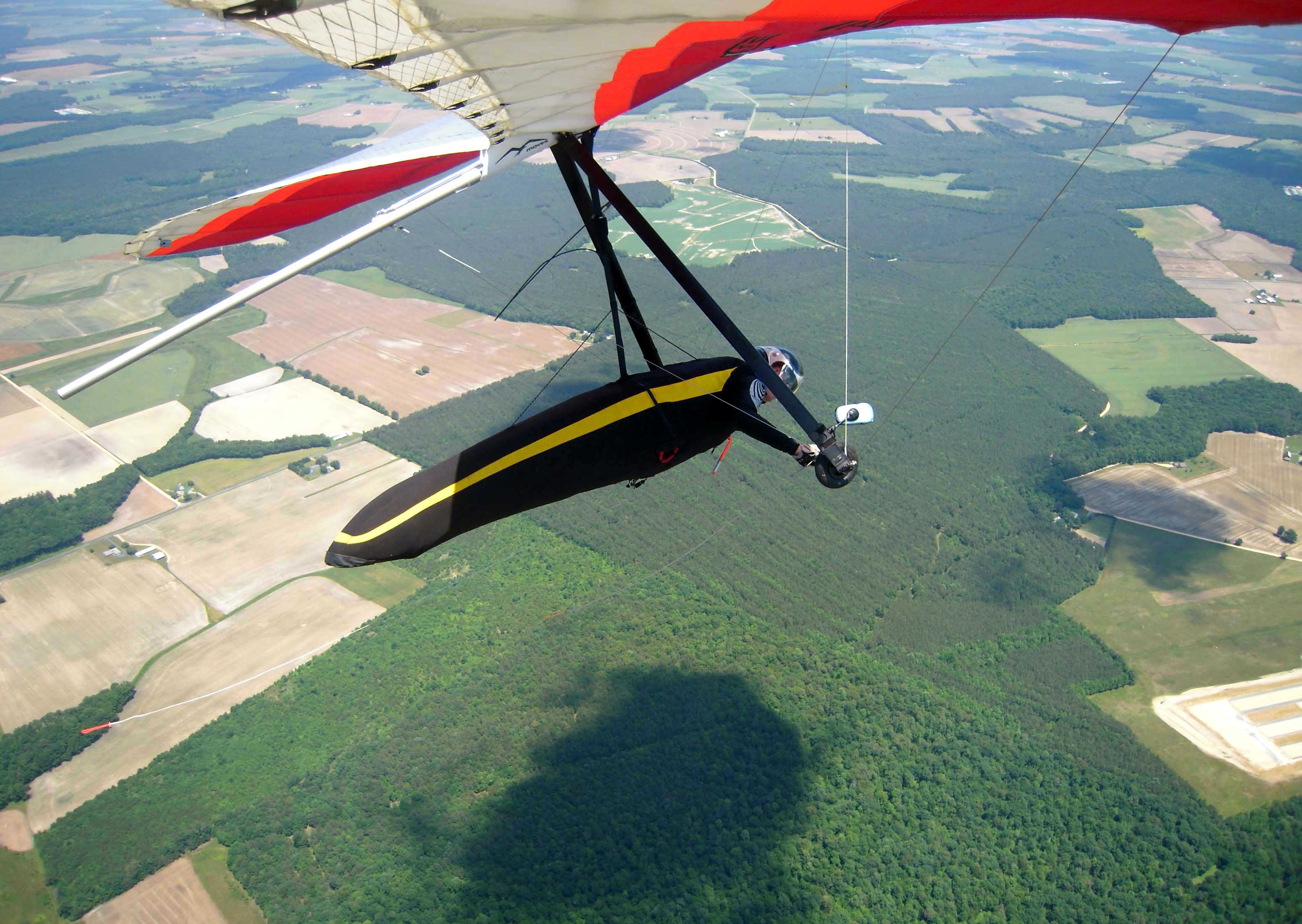6 of us made it to sport class goal (me first - ha!) at Skydive Delmarva. Interesting interaction among meat bombs, hang-gliders and Twin Otter jump plane. No hard feelings. Absolutely spectacular conditions; I spent the last 20+ miles between 3 and 5 grand with good confidence that the next cumie would be productive. 7 straight days of flying (a few got caught when they stopped launch on the second day). Felix already had sport class won, so flew the open class task today. Soraya made goal the first time ever. Michele had a personal best distance. All hail Adam, Sunny, Davis and the whole crew for a great comp! - Hugh