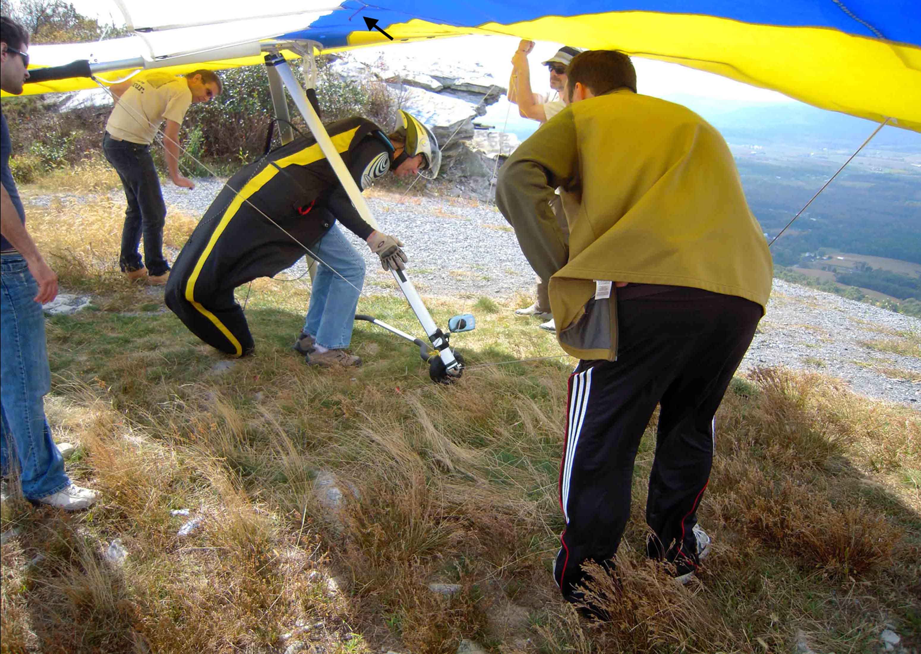 Yesterday evening, I assembled the glider and noticed something that may, or may not, have been the cause of the flapping but I realized that other pilots may benefit from what was found concerning the glider’s undersurface battens. On this Sport 2, if the undersurface battens are inserted so that the aft end of the batten is tucked in the end of the pocket and not projecting out of the pocket (first photo), their forward ends do not extend far enough to reach the undersurface of the leading edge at any VG setting, however if they are pushed deep into the pocket using a pencil or other instrument the forward tips are positioned under the leading edge (second photo). On most or all gliders, undersurface batten pockets are open at the forward end to allow the forward batten end to project beneath the leading edge to keep the forward undersurface from curling up during flight. Without leading edge contact, there is no resistance/leverage for the batten to maintain optimal airfoil shape. The next series of photos show the aft ends of the inboard battens just before and during my flight and, as indicated by the hanging batten strings (arrows), their positions in the pockets are not deep enough to allow contact with the leading edges. Although the outboard undersurface battens are not in the photos they also do not extend to the leading edges as their position in the pockets is the same as the inboard battens and looking at the glider last evening, there is no batten - leading edge contact with these guys either. I’m guessing that this issue is the cause for the rippled undersurface shape that is evident in the in-flight photos. The only way I can get the battens to extend to the leading edges, as mentioned above, is by using the eraser end of a pencil or other blunt end tool to push the battens deeper in their pockets. The Sport 2 manual is not clear about how the undersurface battens should be inserted nor is there ANY mention of how they should be pre-flight inspected. In fact, the only comment about pre-flight inspection of battens (any batten) in the entire manual is the rather brief statement on page 19 “Check that all battens are properly secured.” My guess is that either the battens for my glider were cut to short or WW shipped undersurface battens for a smaller version of the Sport 2. Whatever the cause, my hope is that everyone confirms either visually or by pushing up on the undersurface where the batten should meet the leading edge during preflight to insure that the batten tips are making contact with the leading edge. If you have to push the batten deep into the pocket to reach the leading edge, there is no guarantee that they won’t move aft and away from the leading edge during flight. I’ve contacted John M and hopefully soon either he or WW will advise. Ward