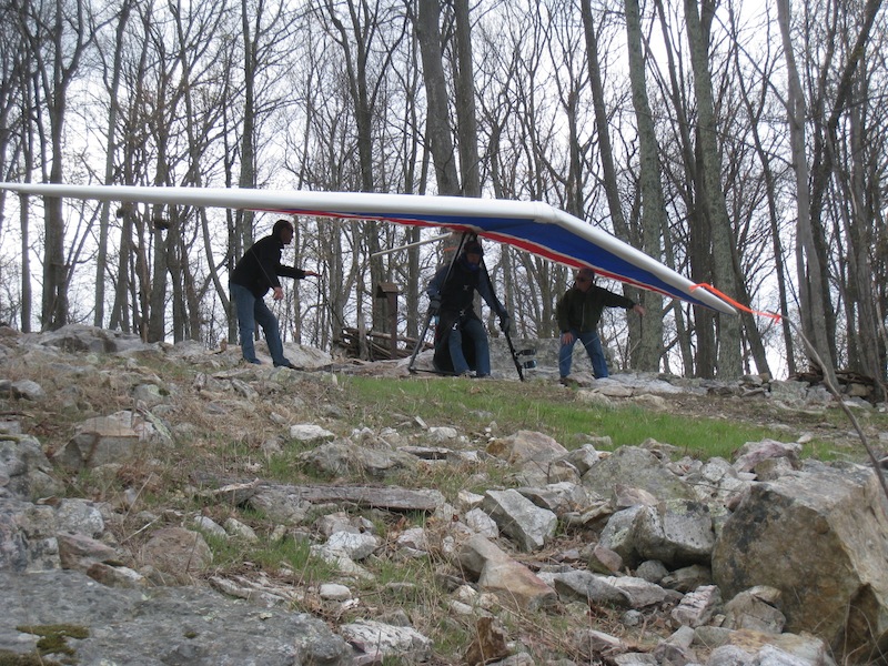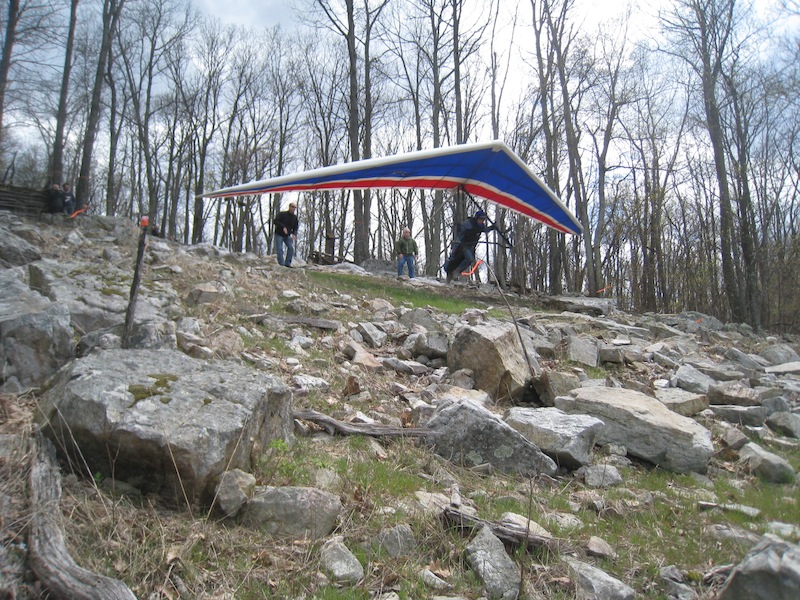 Winds at Woodstock launch from 10:45 to 12:30 am were 3 to 5 mph, with a slight west component. Woodstock effect much in evidence, but set up and waited for more winds and pilots. At around 11:15 am a sailplane flew NE past launch at about 100 ft. below launch. About three minutes later it flew SW past launch at about 200 ft below. Looked like the pilot banked on the strong winds forecast and got skunked by the Woodstock effect. We did not see the sailplane again and it may have had to land out – not a desirable outcome for these aircraft.